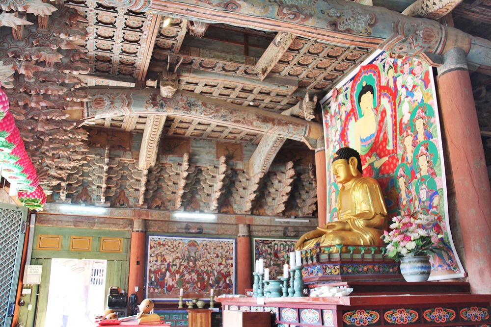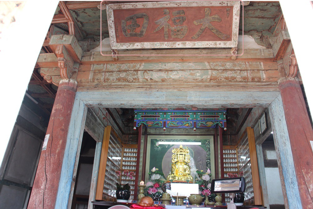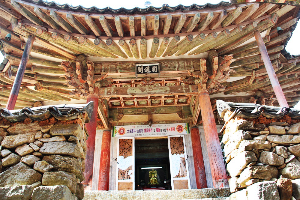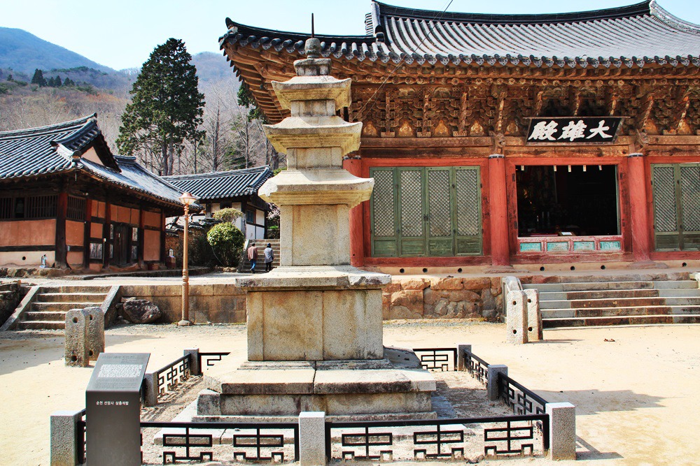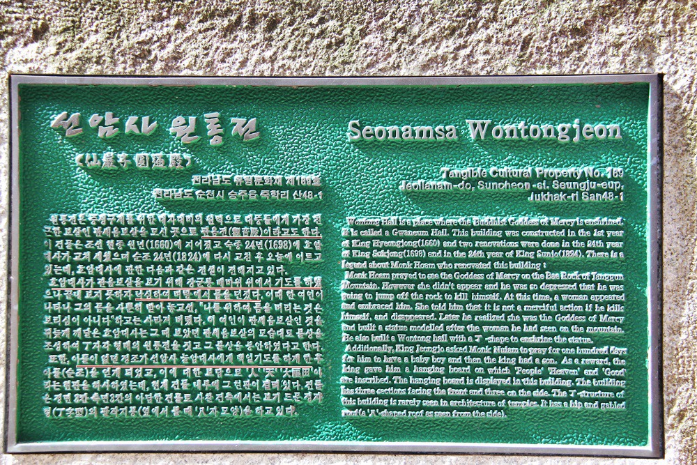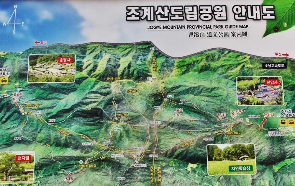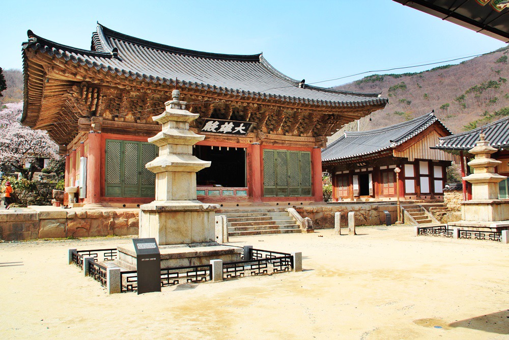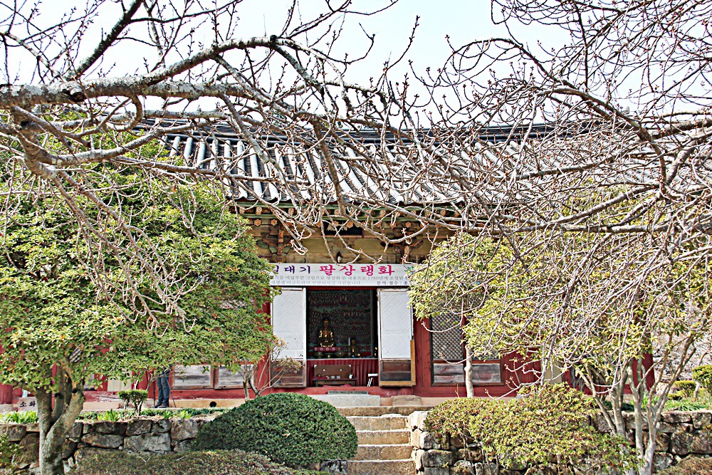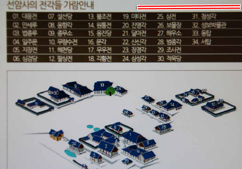 - 1)승선교, 2)-일주문. 3)-대웅전앞 삼층석탑,4) -원통전 (대복전)5),_매화나무,6) 누운소나무.딋깐