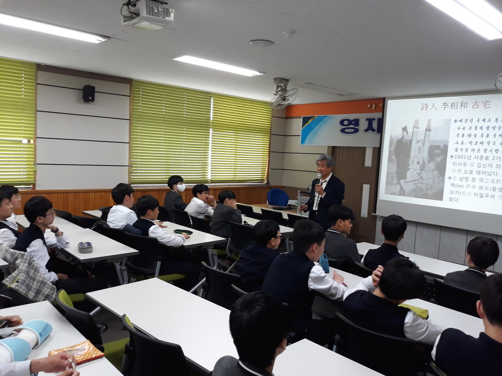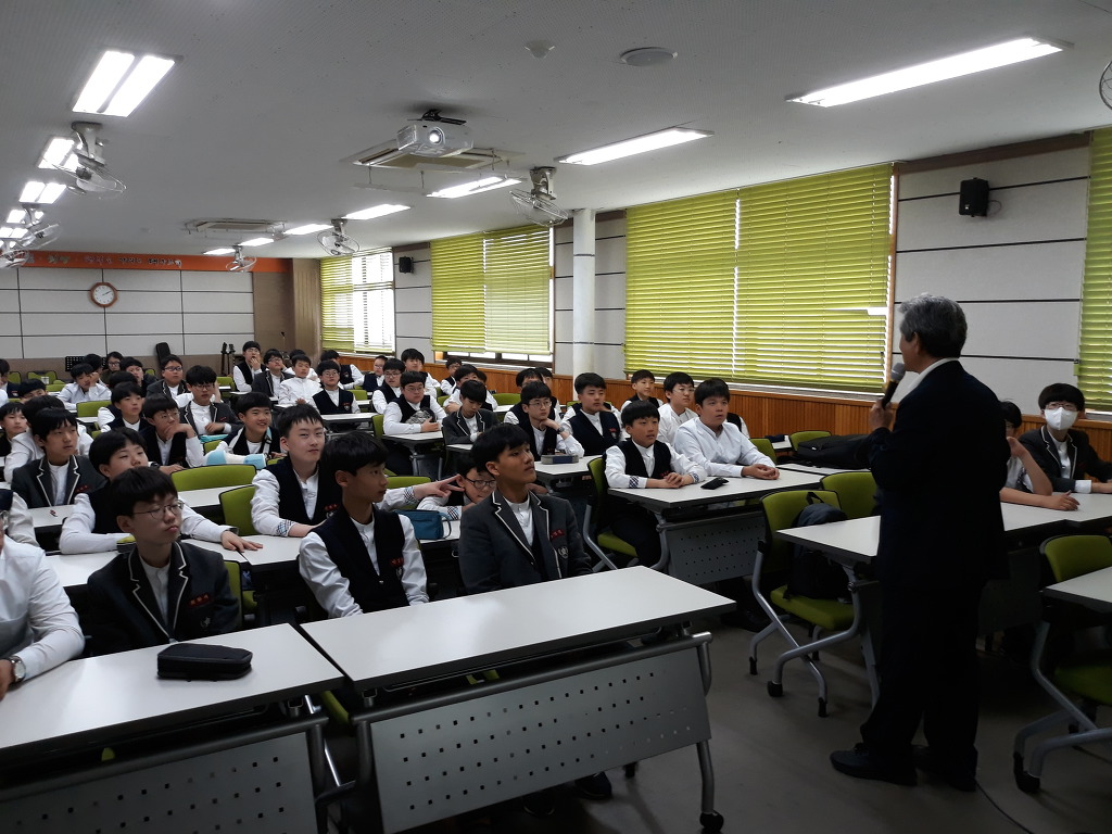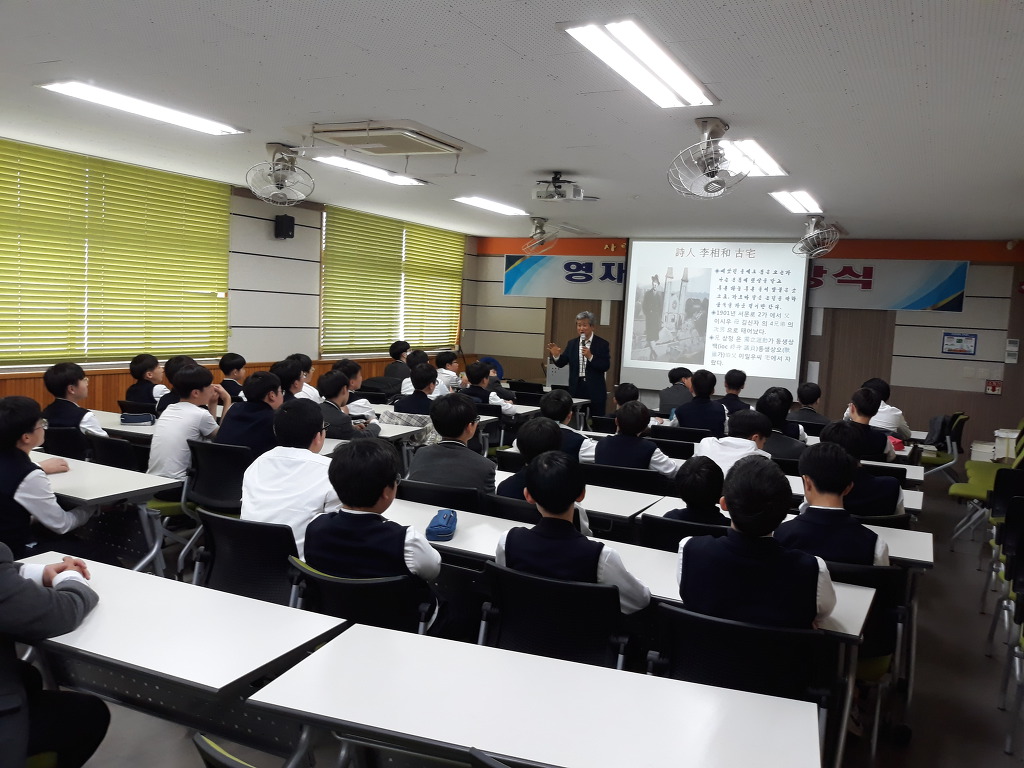 교실 가득한 학생들 앞에 열강 하시는 모습