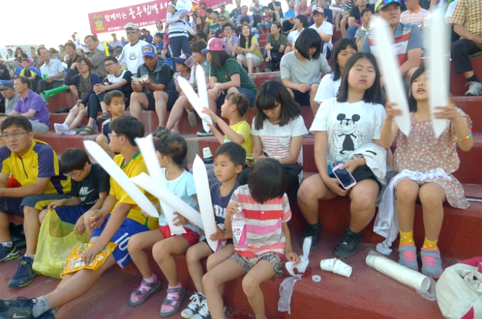 아이들 모두 열심히 응원하는 중인데요. 우리 아이들의 응원으로 승리를 맛 볼 수 있을까요?