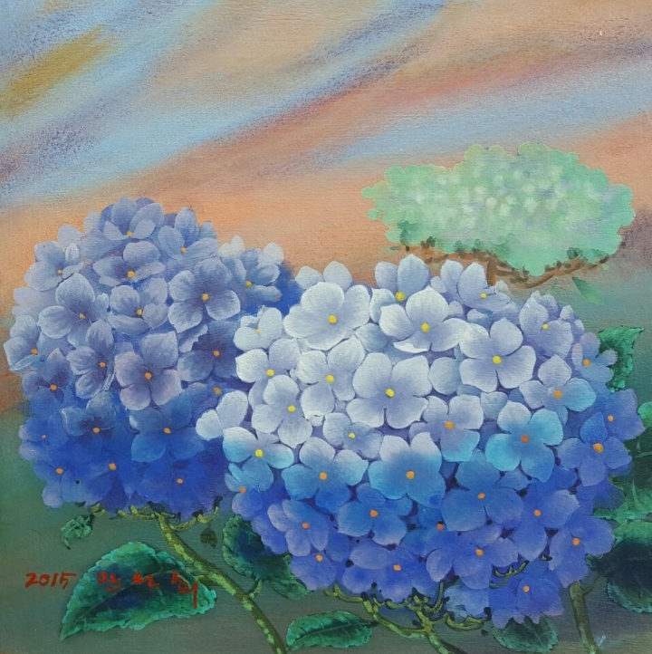 개인적으로 좋아하는 수국그림입니다. 주인을 만날뻔 하다가 더 큰 그림에 밀려 내게 남은 그림이죠.