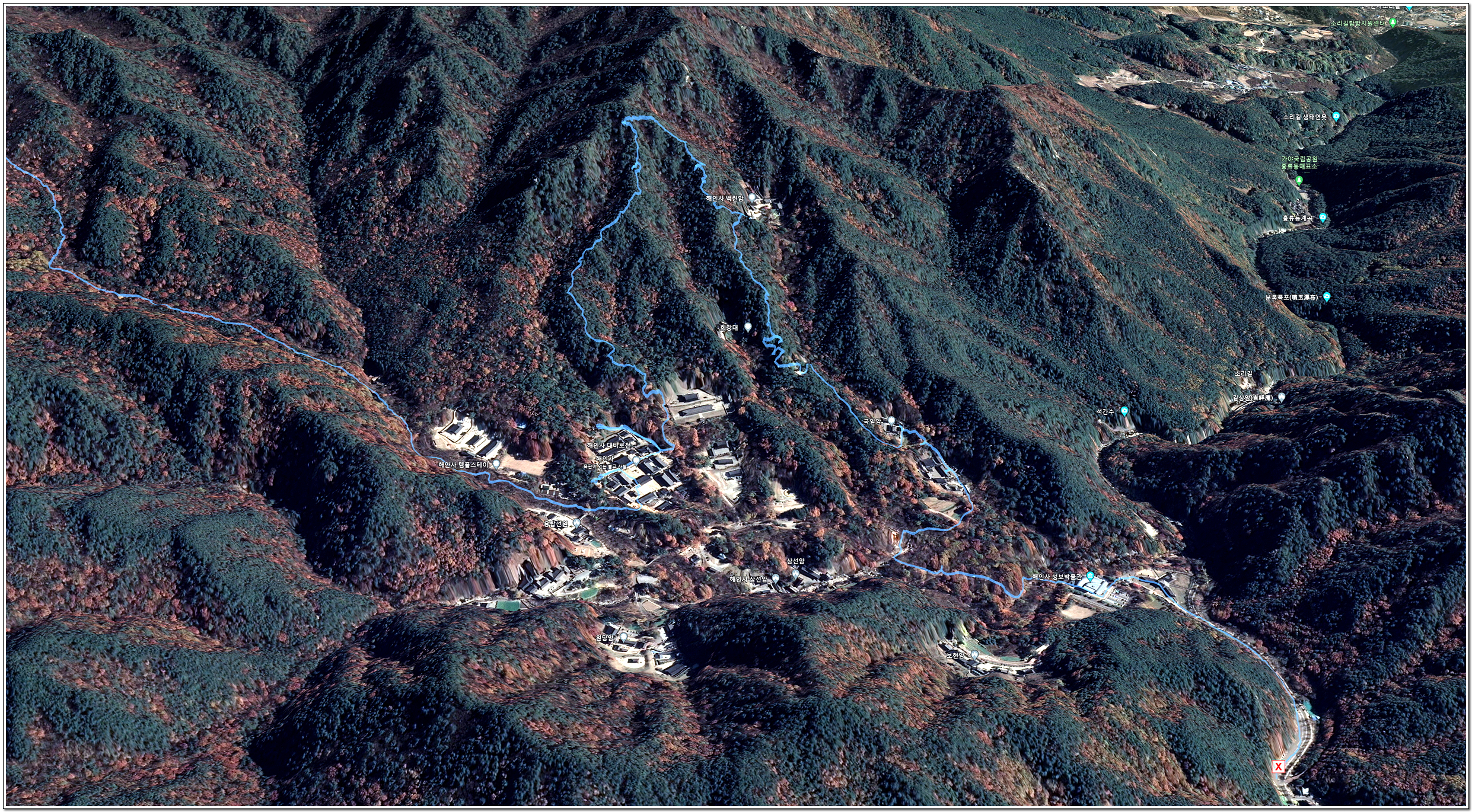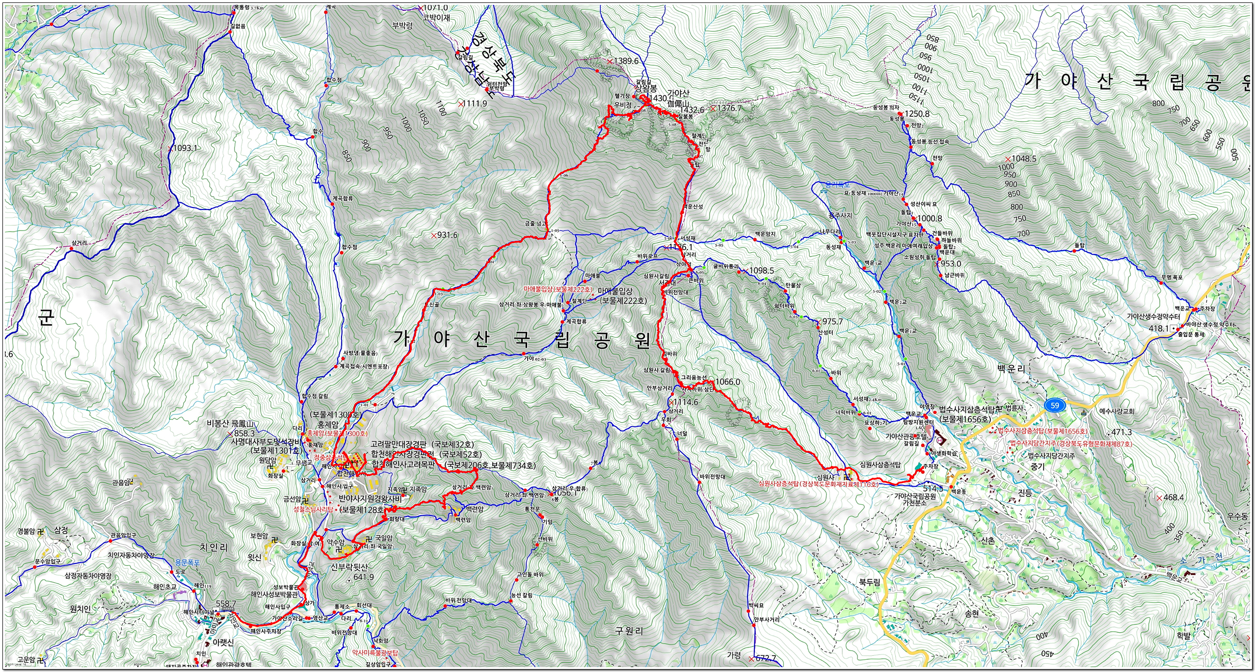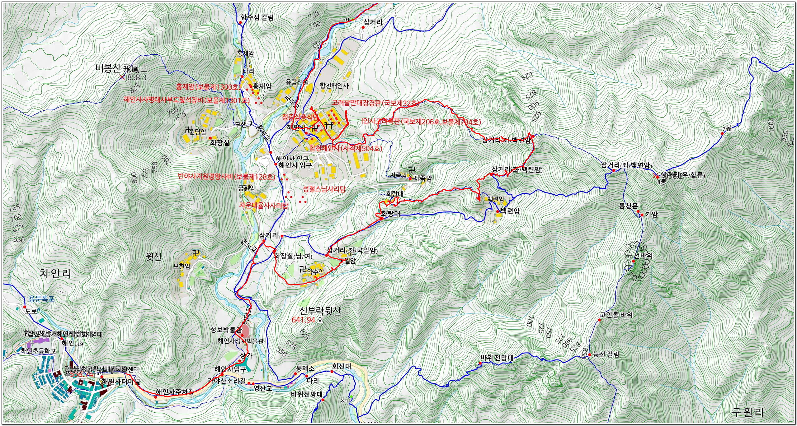 ▲해인사 산행경로(확대)