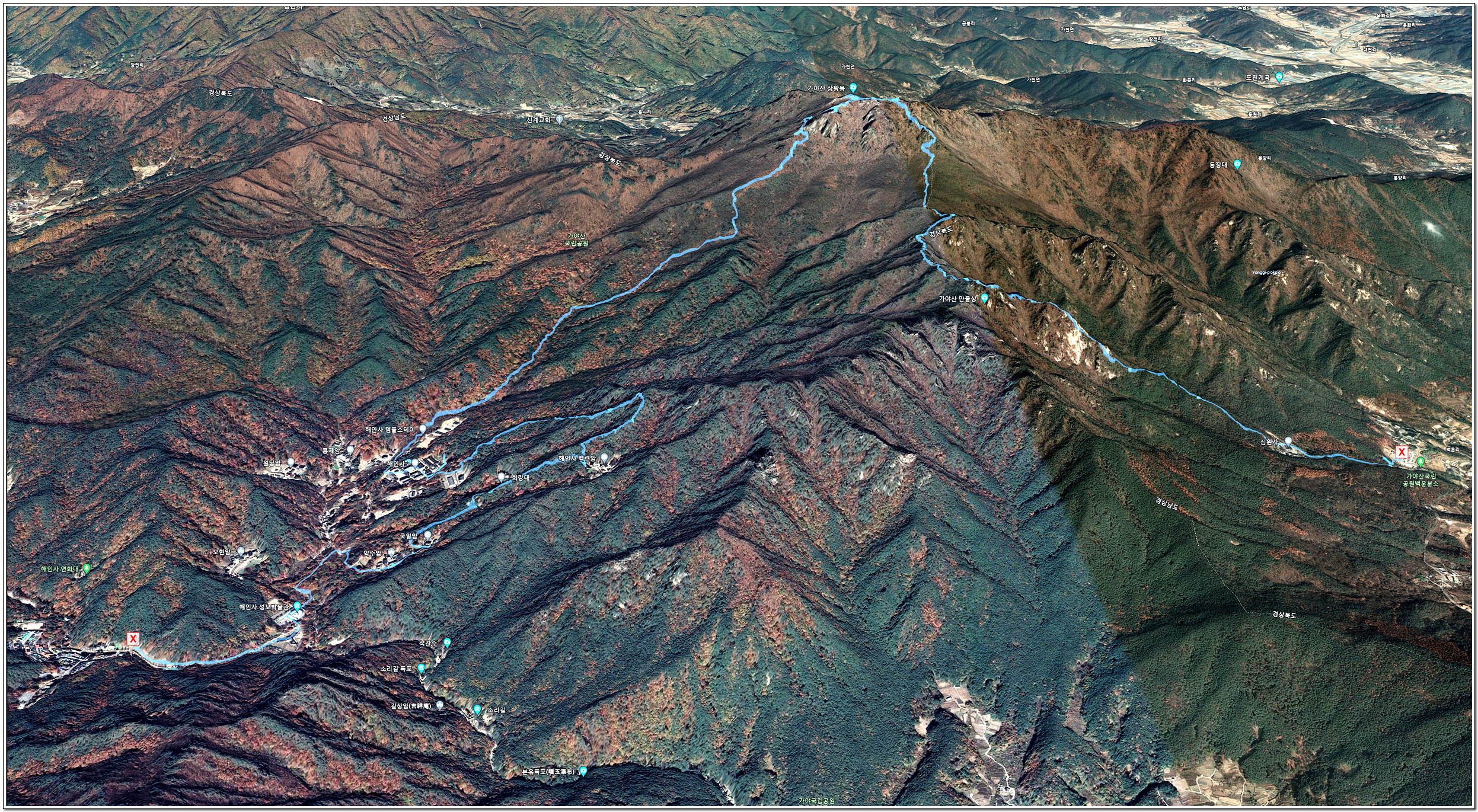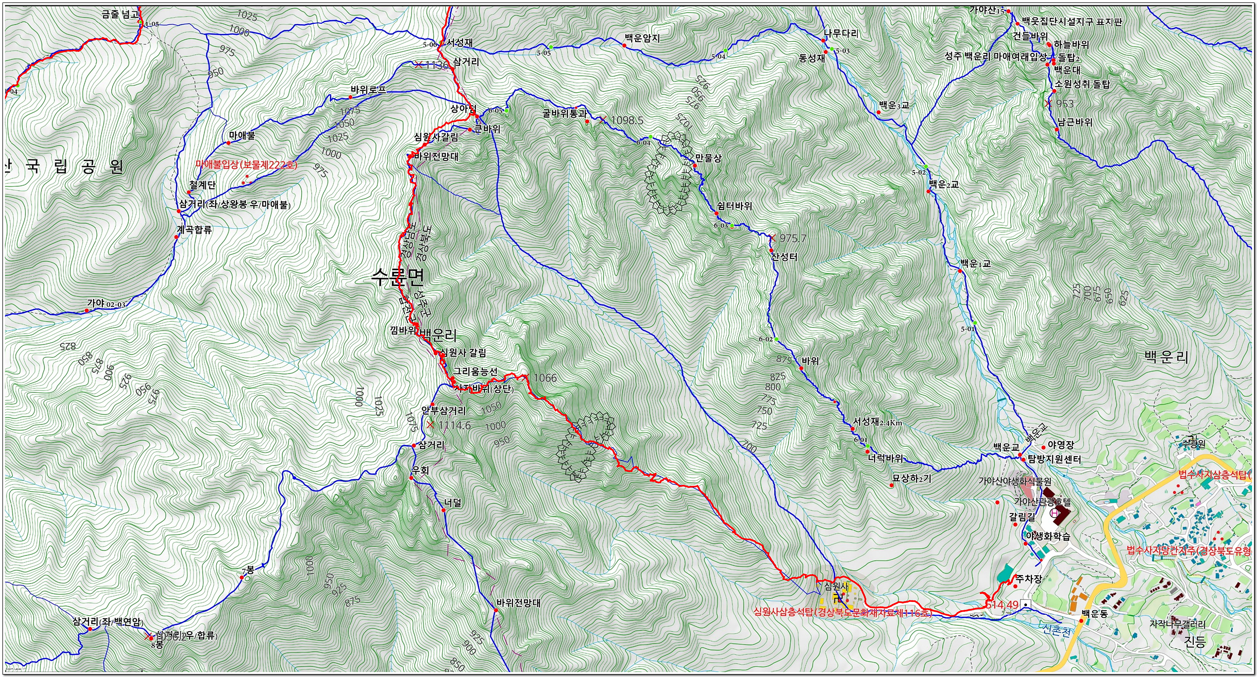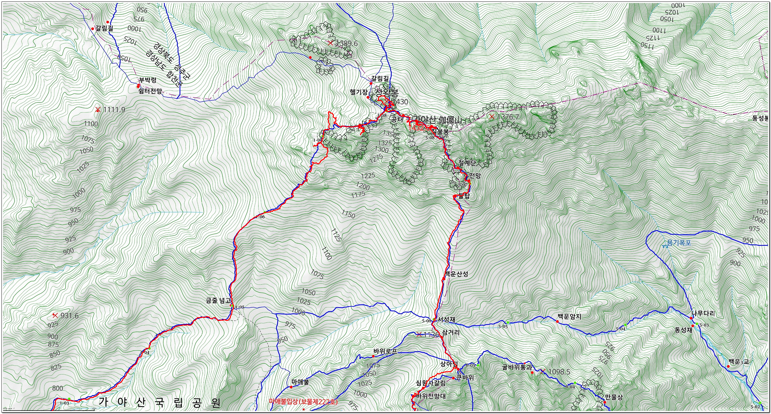 ▲해인사 산행경로(확대)