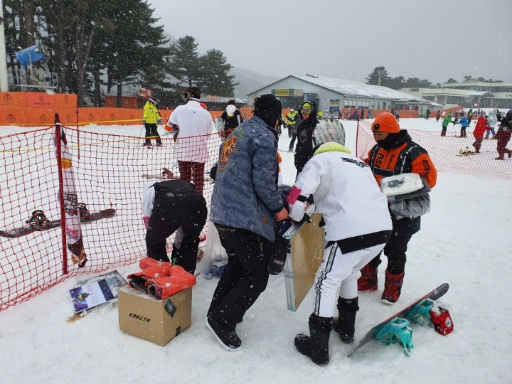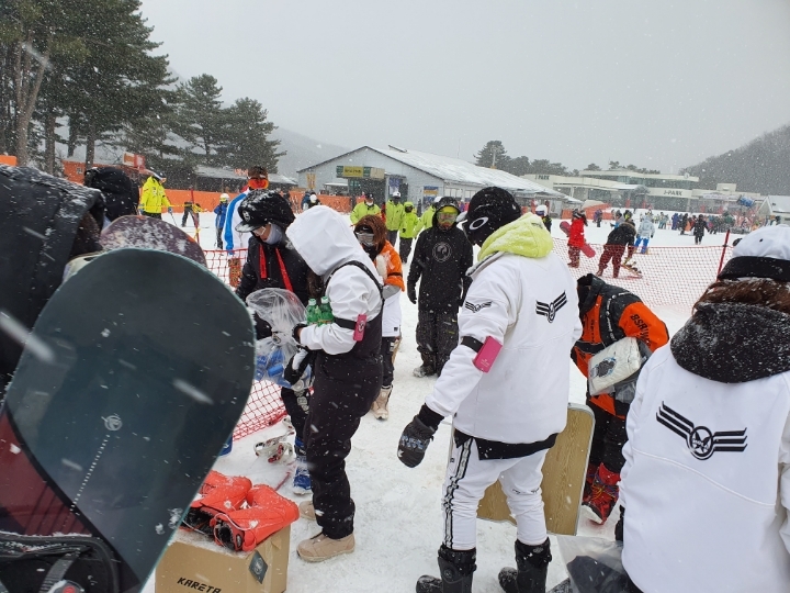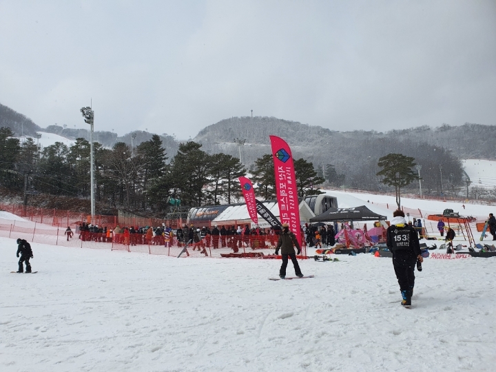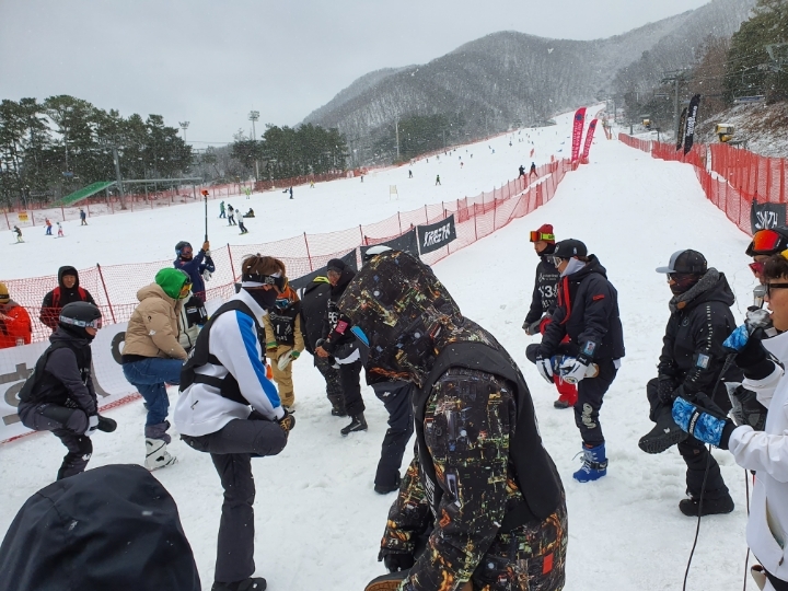 얼떨결에 엑스보드 동호회 VS 헬로우스노우보드랑 슬라럼 대결...ㅜㅜ