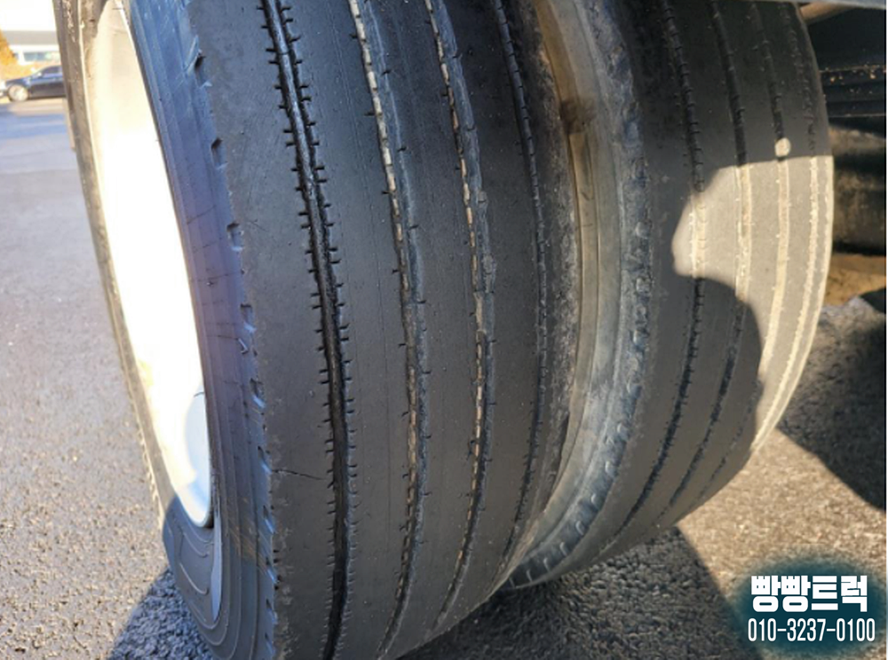중고2.5톤덤프트럭 차량의 타이어는 입고 후에 교체를 진행해두어서 중량물을 말끔하게 실어서 운행하실 수 있어요