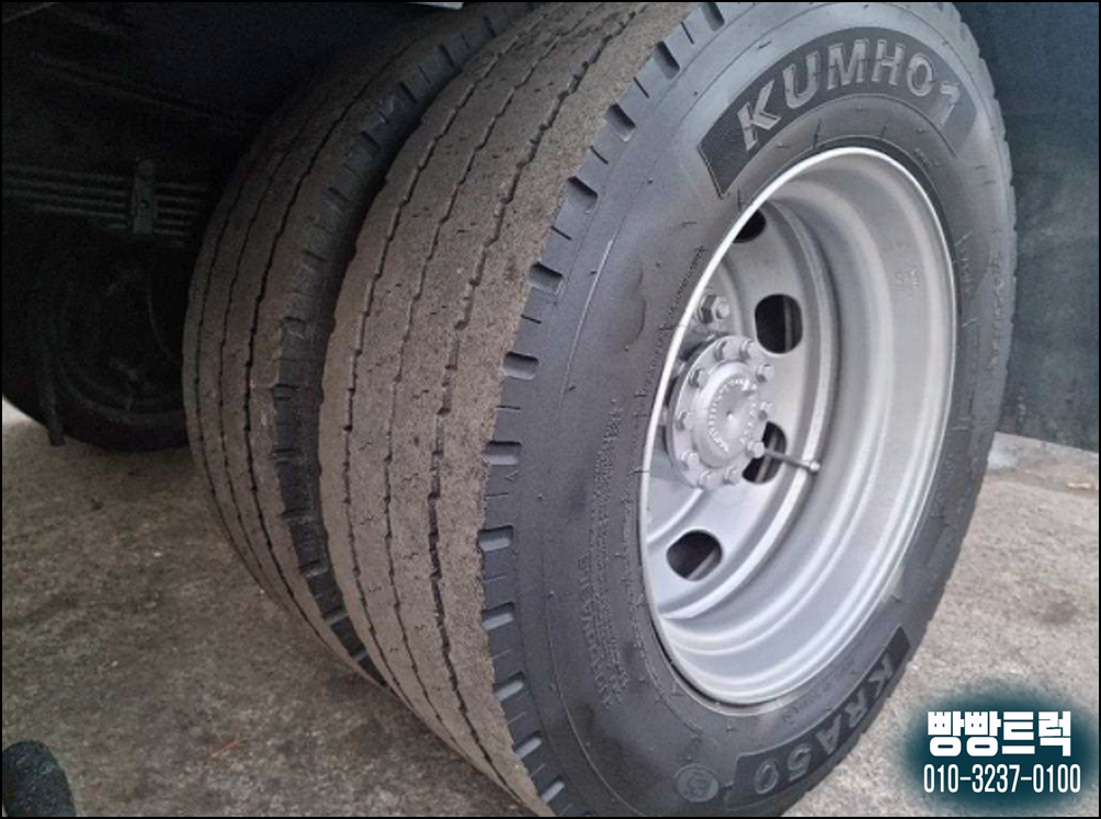 현대정품화물차 의 타이어는 80% 이상의 트레이드 상태로 넉넉하게 남아있어서