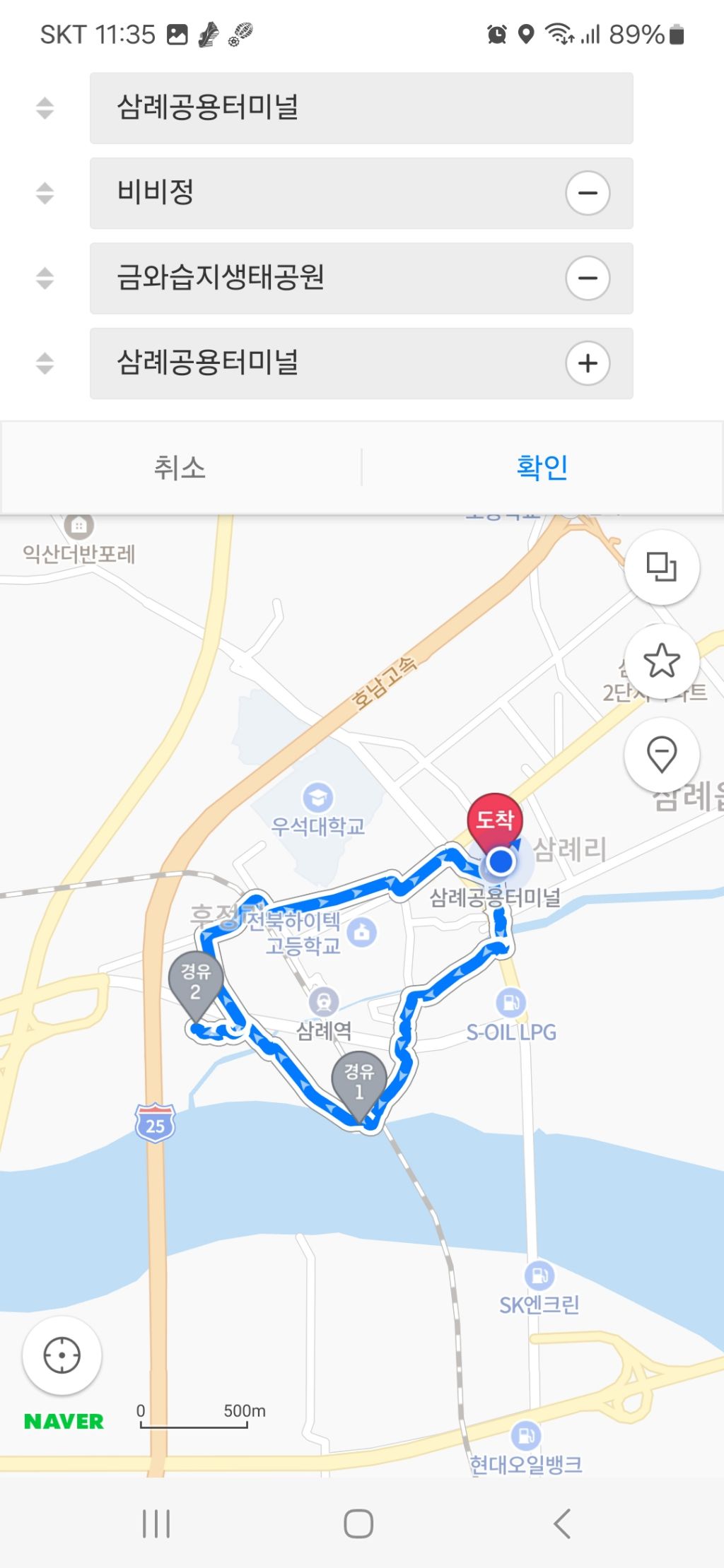 ㅡ 코 스 : 전주~삼례우성아파트정류소~비비정~호남고속도로옆~금와습지생태공원~출구~구)삼례역~삼례버스터미널~삼례우성아파트정류소