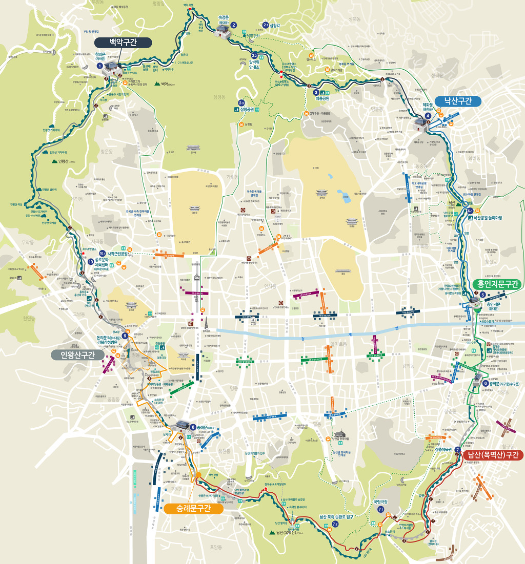 산행코스 = 서대문역-돈의문터-인왕산-창의문-북악산-숙정문-혜화문-흥인지문-동대문역