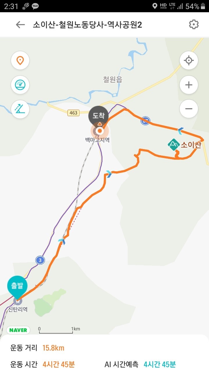 산행코스 = 신탄리역-역고드름-소이산-노동당사-백마고지역