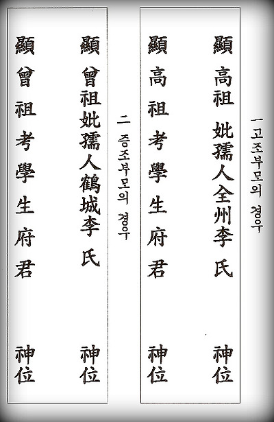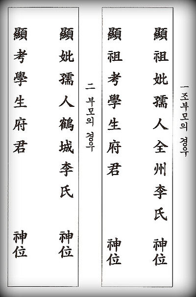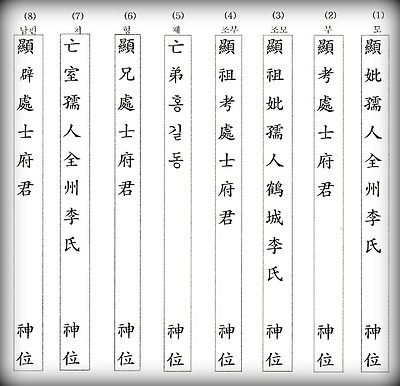 고인의 호칭(父는 顯考. 母는 顯比)과