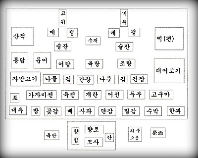 어동육서(魚東肉西)=어물은 동쪽 육류는 서쪽으로 진설