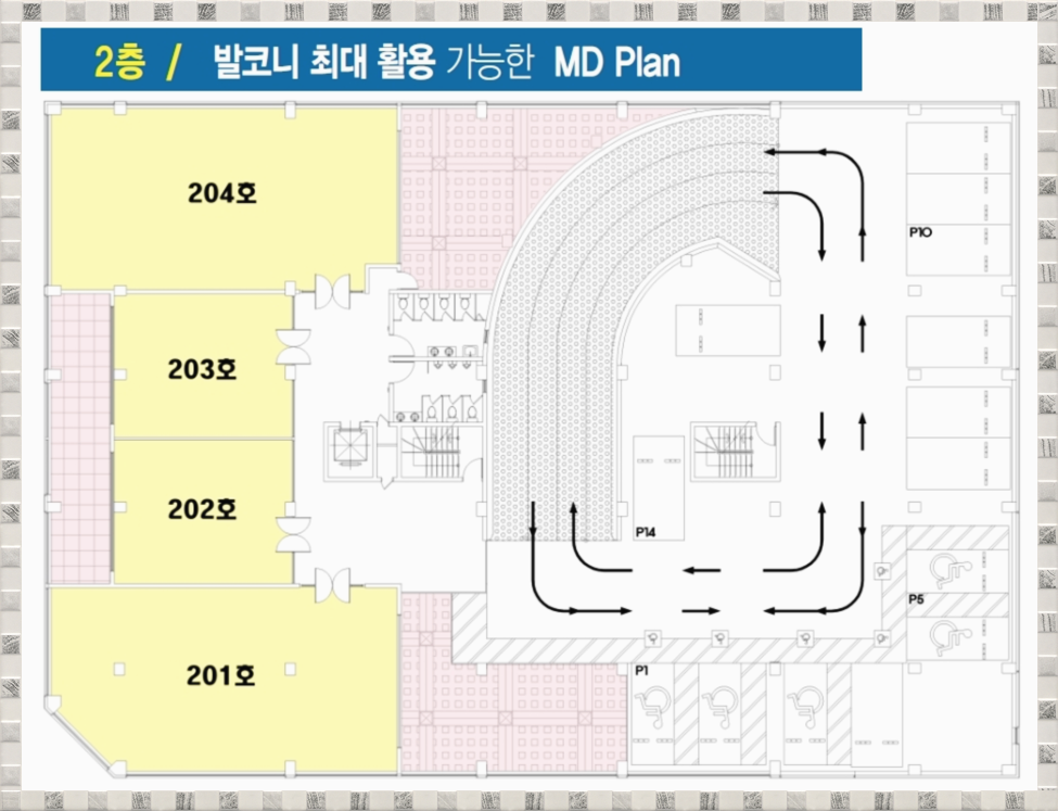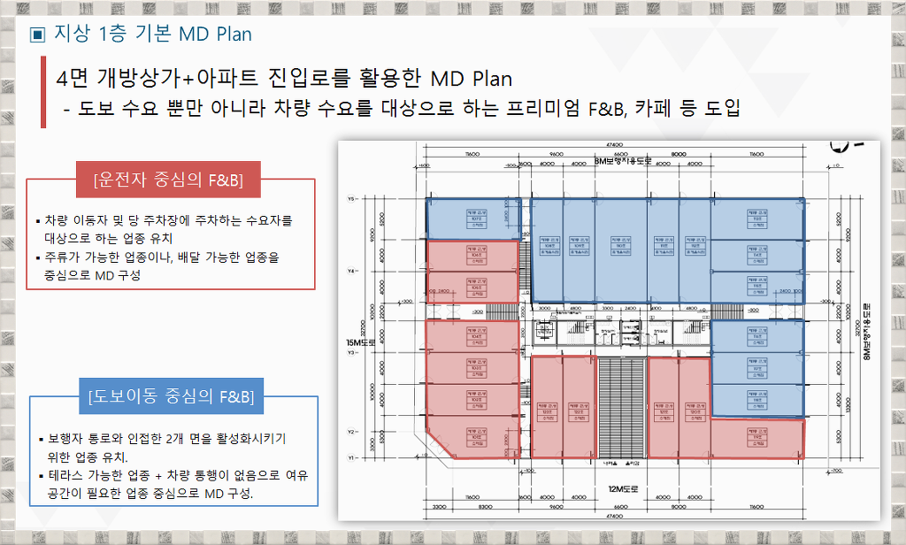 1층 4면 개방형설계 및 아파트를 활용한 MD Plan