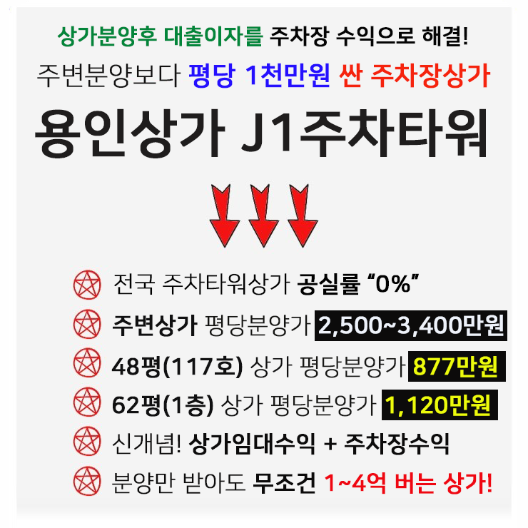 ▶ J1주차상가 평단가 800~1,200만원 ◀