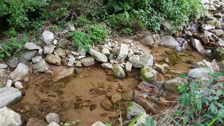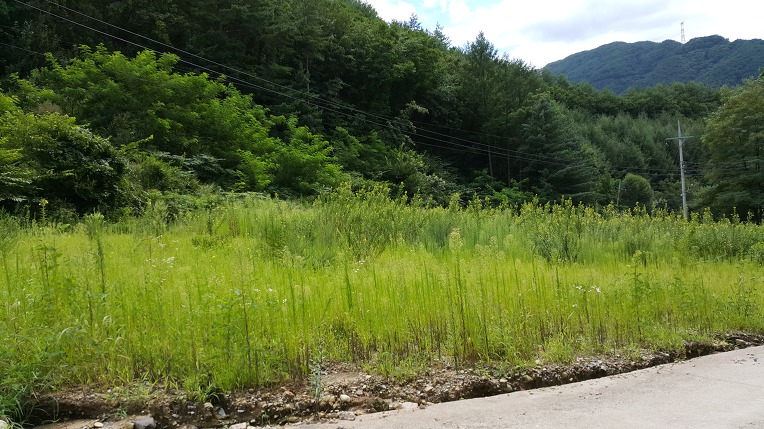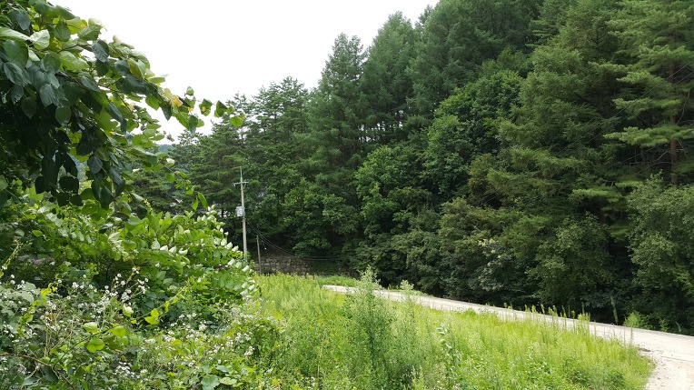 평창 아늑한 산속 소개울접 야산아래 하천부지딸린 전원부지(450평,1억1천)
