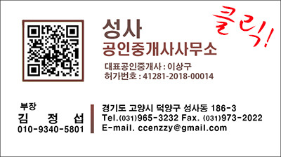 중개업소 상호 | 성사공인중개사 | 등록 번호 | 41281-2018-00014 |