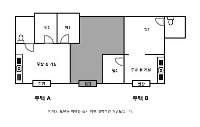 건축물 구조 | 방2, 거실 겸 주방, 화장실 | 용 수 | |