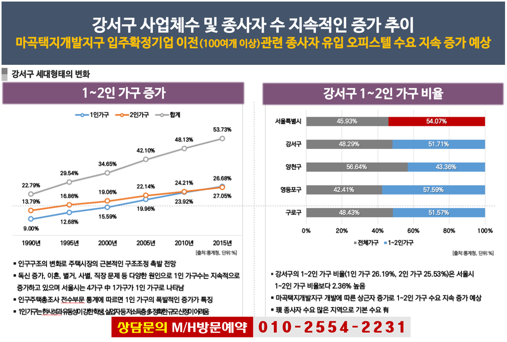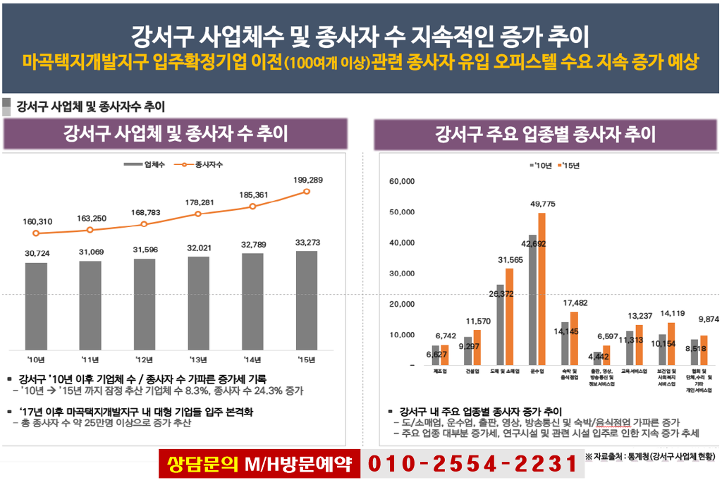 마곡지구를 논하지 않을 수가 없는데 산업ㆍ업무ㆍ의료 등 유입되어야할 기업체 및 인구는 현재 30%수준에 이르고 있지만 2019년 한해에만 입주될 30%가량의 수요가 확보될 예정이나 2017년 초기까지 공급 완료된 오피스텔 15,000실(미만)은 이미 만실을 이루고 있고 꾸준히 지가ㆍ임대료가 올라가는 상황이며 추가 공급될 부지는 없습니다. 하여 주변 지역에 오피스텔을 공급하고 있지만 턱없이 부족한 상황 입니다.