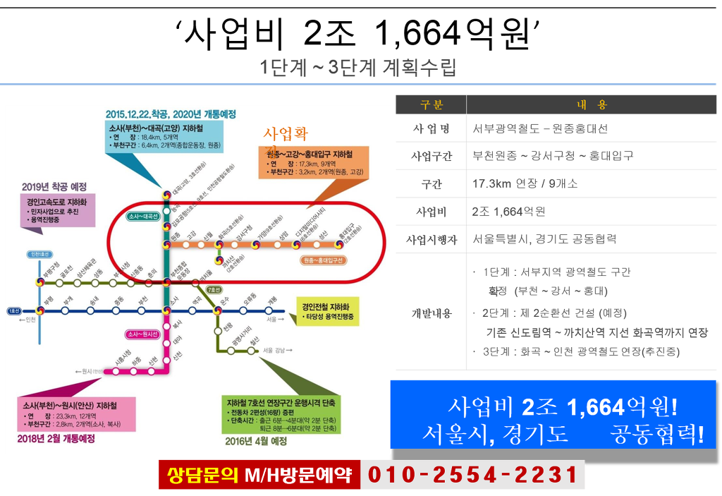 꾸준한 개발과 인구 유입으로 인한 지가상승이 꾸준한 지역으로 향후 서부광역철도와 까치산까지만 운행하던 2호선 연장 계획이 있는 현재는 낙후 되어 있는 만큼 지가상승으로 반영될 수 있는 개발 이슈들이 넘처 납니다.