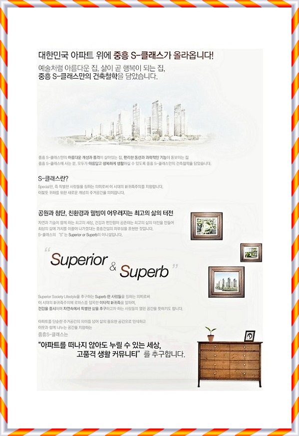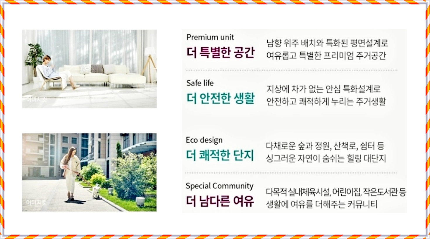 더불어, 타입별 탁 트인 쾌적한 실내, 거실과 주방분리, 주방 옆 넓은 발코니, 드레스룸 등 넉넉한 수납공간, 한층 깔끔하고 고급스런 분위기를 연출한 중흥 특화설계를 하였습니다.
