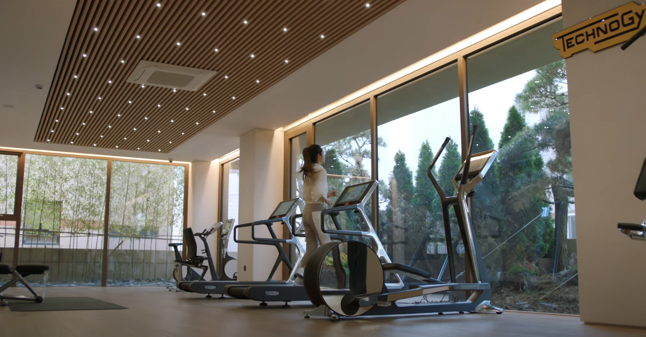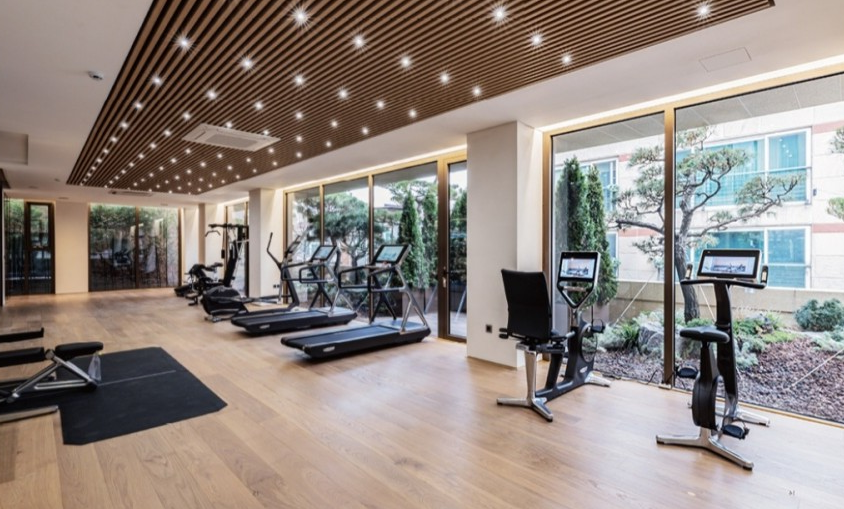 테크노짐 기구들로 구성된 피트니스 센터와 GX룸,