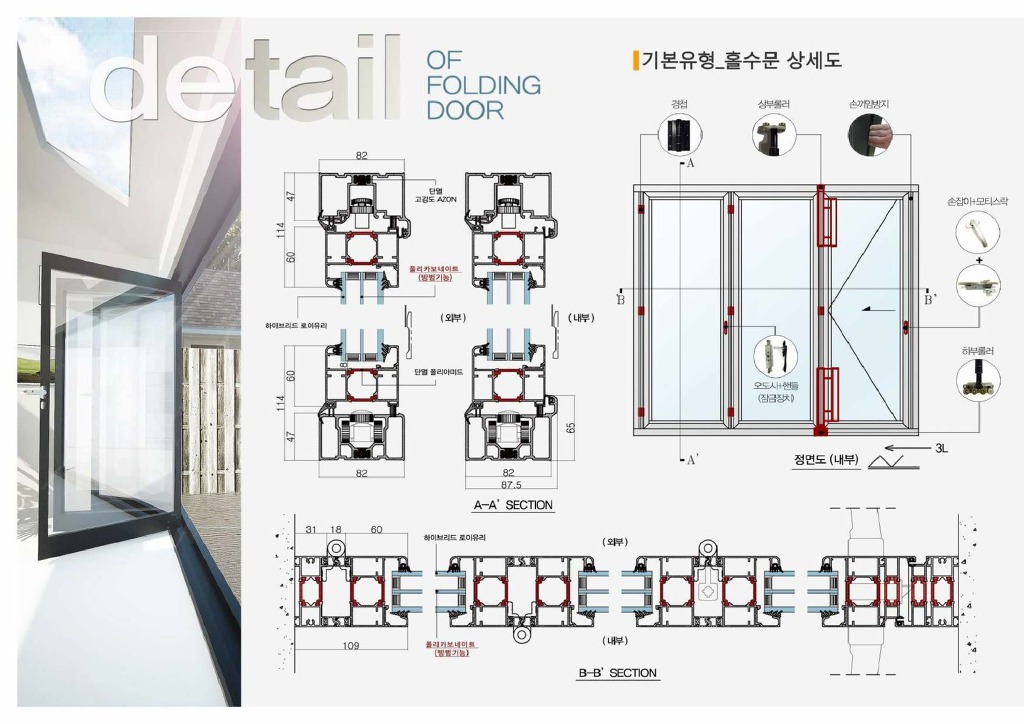 2017 11월 신제품 - 단열폴딩도어[열관류율 1.566]-복층유리(24mm)사용 국내 최저 열관류율 제품