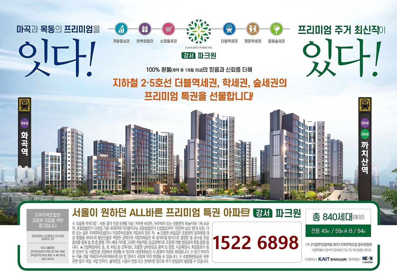 ▣ 프리미엄 특권 2, 5호선 더블역세권 학세권 숲세권 강서파크원 아파트