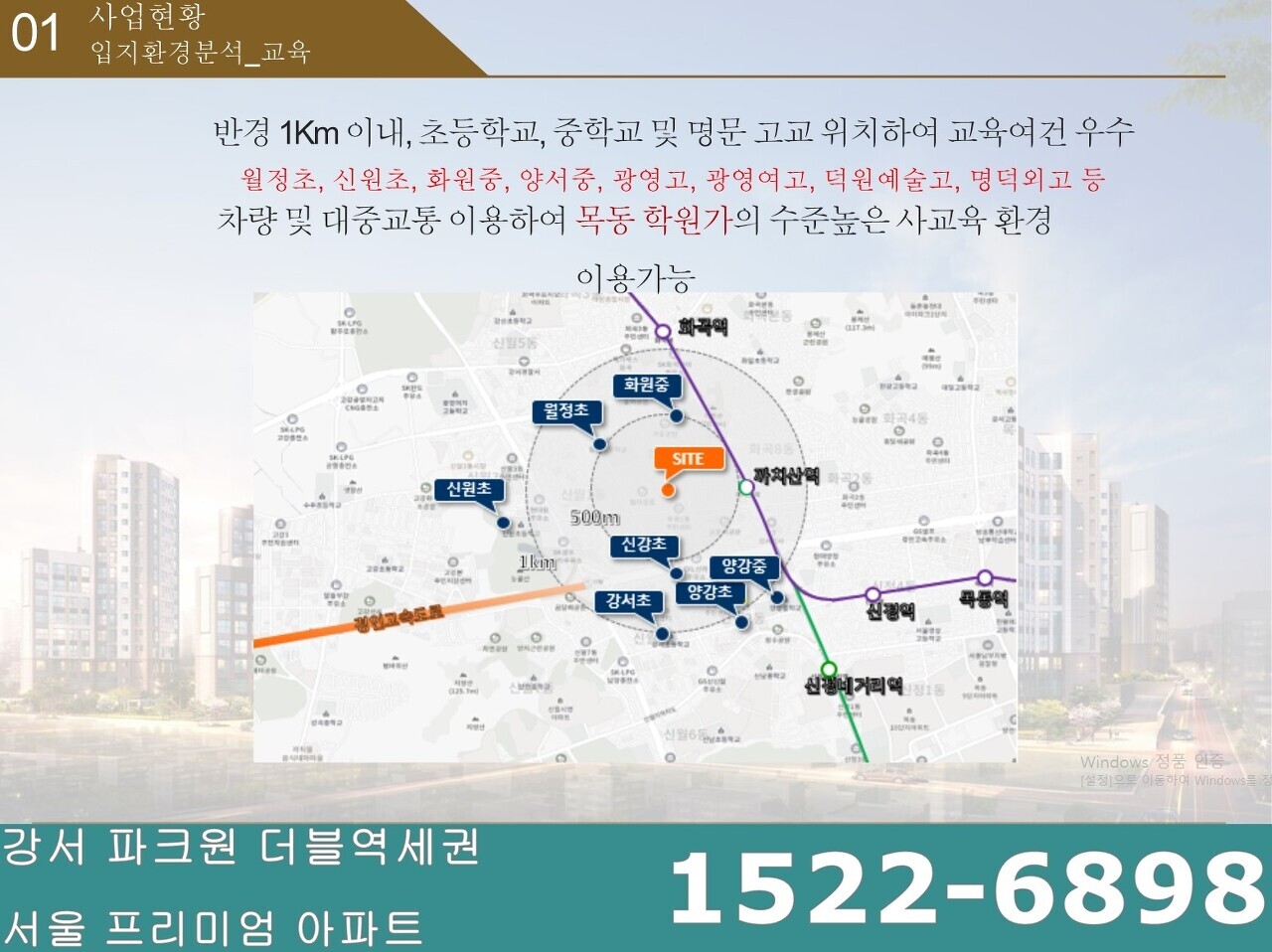 반경 1Km내 초, 중, 고 및 명문고교 위치 (월정초, 신원초, 화원중, 양서중, 광영고, 광영여고, 덕원예고, 명덕외고 등) 가깝고 다양한 목동 학원가 등 교육시설 이용