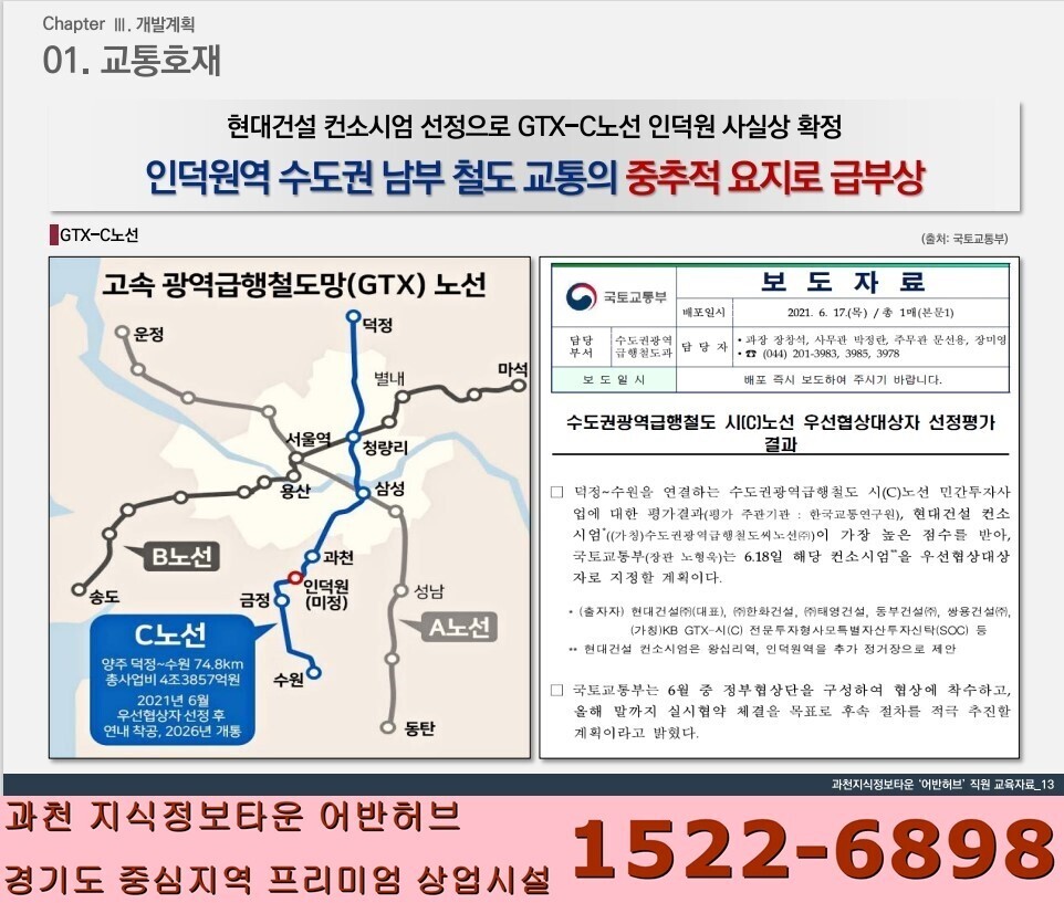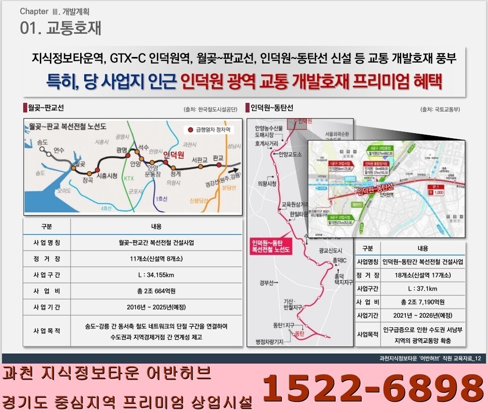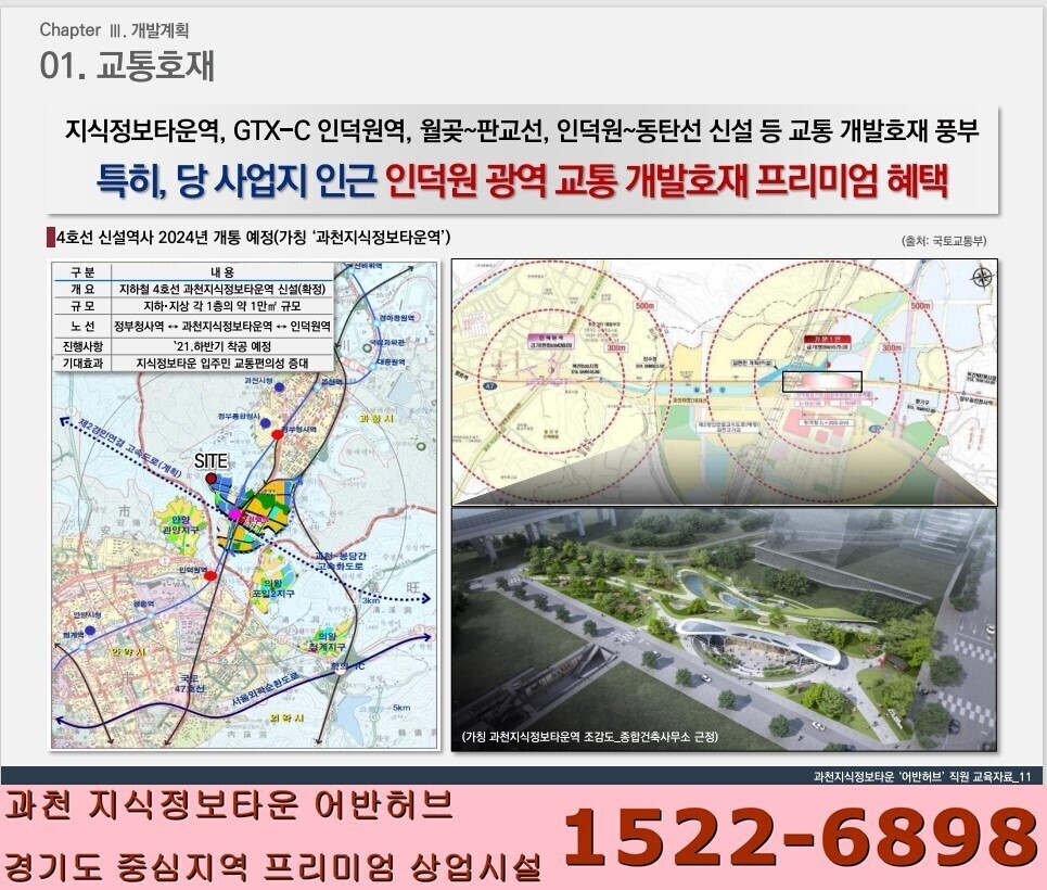 ■ 교통장점: 4호선 과천지식정보타운역 신설확정, GTX-C인덕원역, 월곶~판교선, 인덕원~동탄선 신설 등 쿼드러플 역세권(사업지 인근 인덕원 광역 교통 개발호재 프리미엄 혜택)