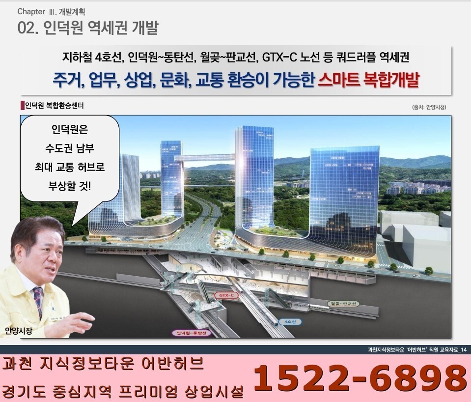 - 제2의 판교라고 불리는 인덕원 역세권 도시개발 사업 (주거, 상업, 문화, 교통중심의 복합공간으로 개발 예정)