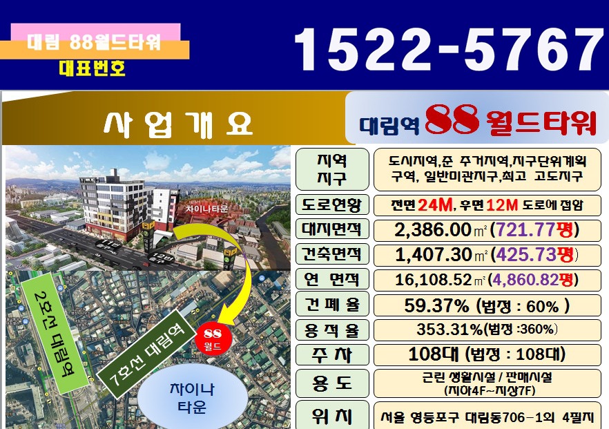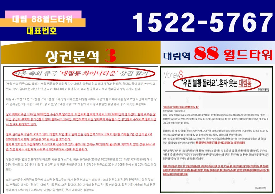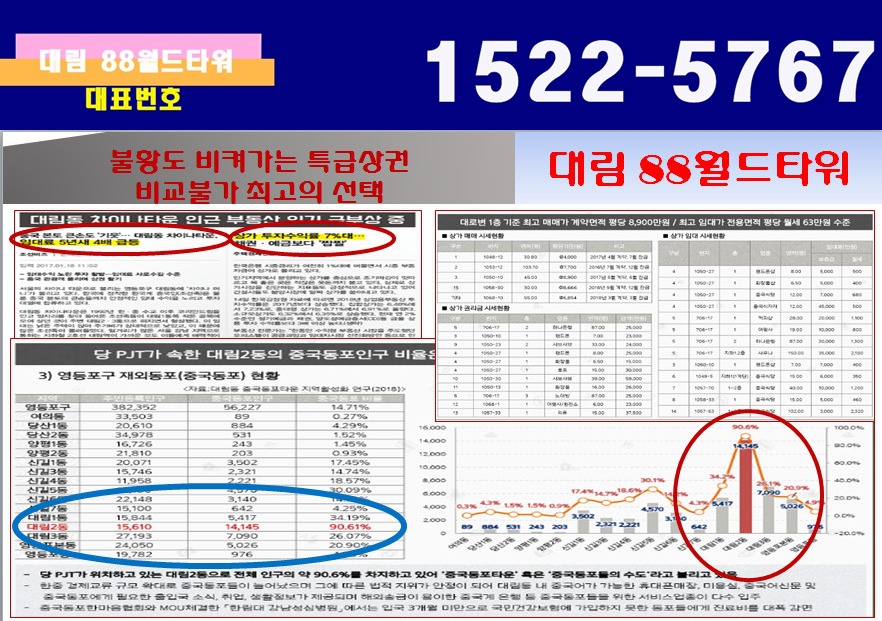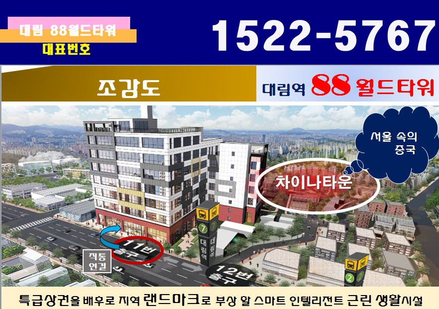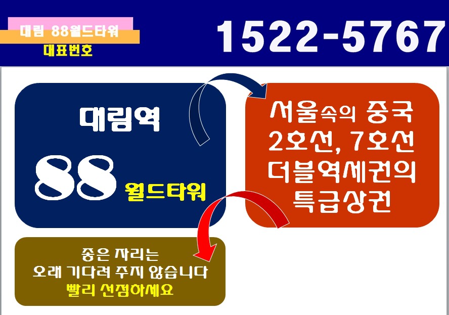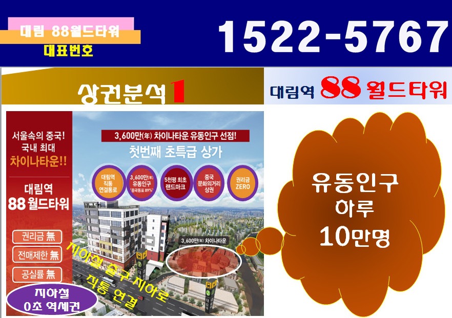 연 3천만명 임대수익이 6% 의 더블역세권 대림역 차이나타운 직통연결통로 88월드타워 분양중