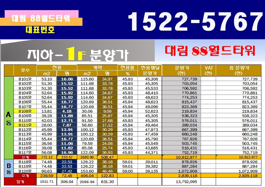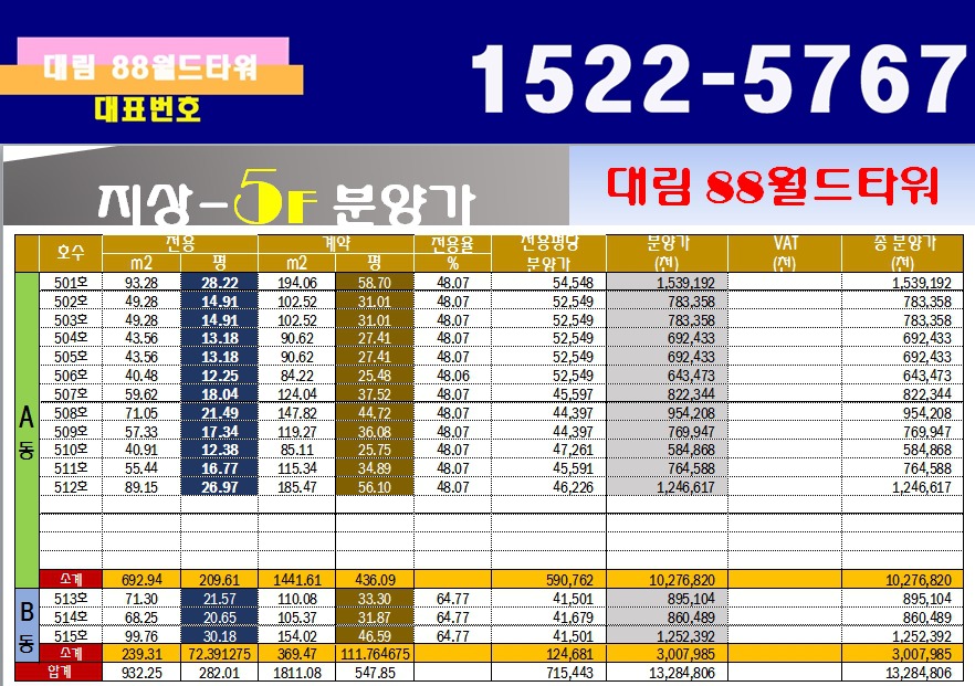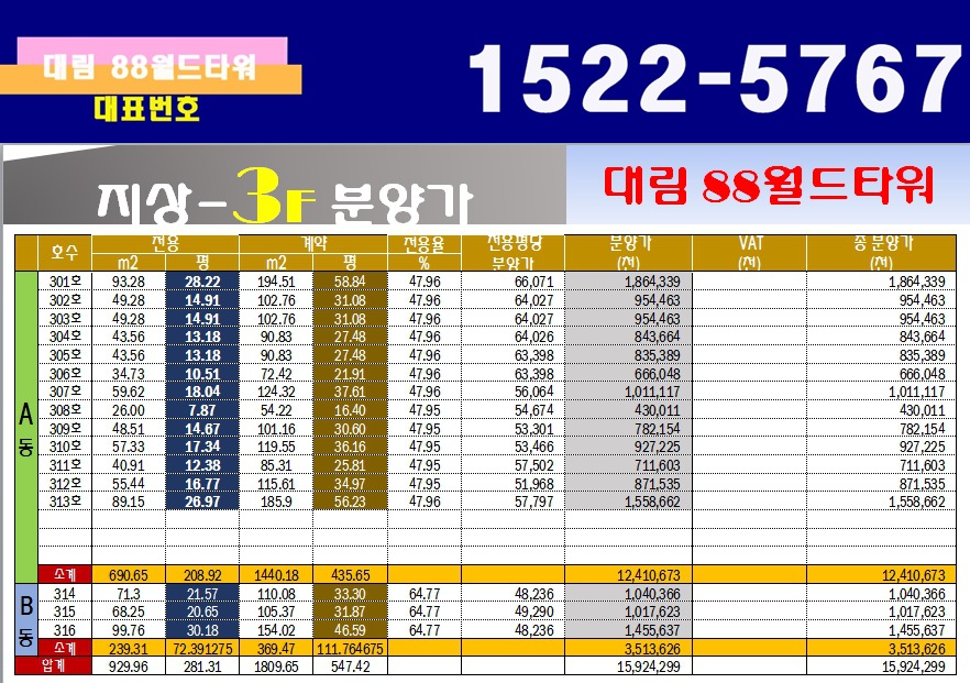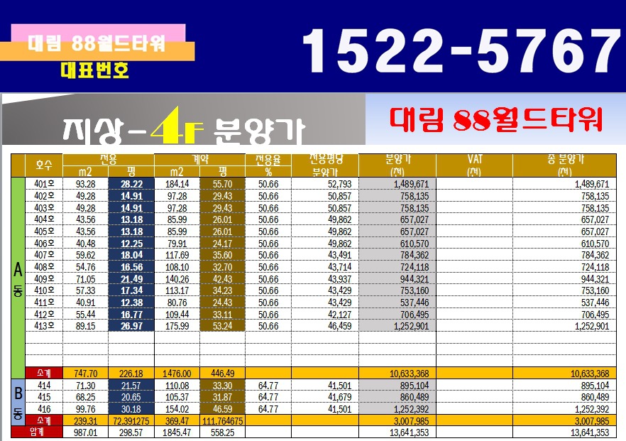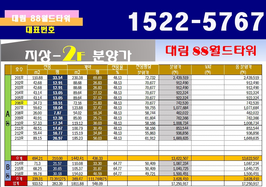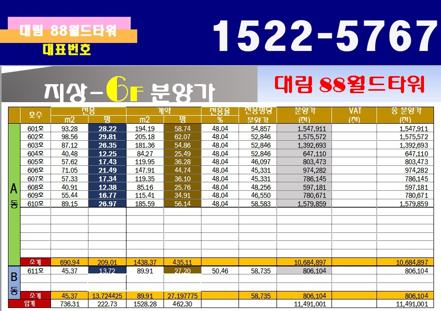 연 3천만명 임대수익이 6% 의 더블역세권 대림역 차이나타운 직통연결통로 88월드타워 분양중