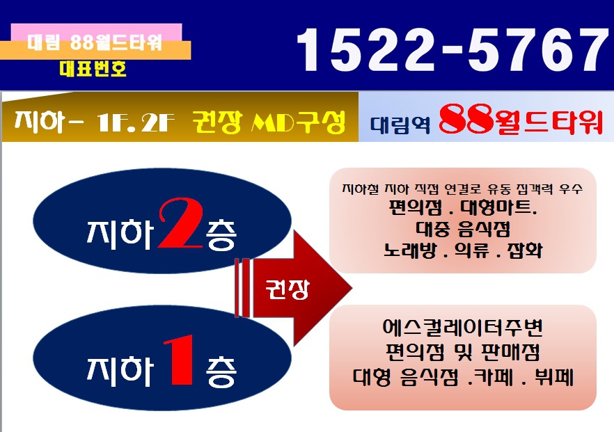 서울 영등포구 대림동에 근린상가‘대림역 88월드타워'가 10여 년 만에 약 5000평 141개 점포 규모로 분양을 시작해 주목받고 있습니다.‘대림역 88월드타워’는 7호선 대림역 11번 출구 바로 앞에 위치하며, 지하 2층은 7호선 대림역 통로와 연결될 예정입니다. 지하 2층부터 지상 3층까지 에스컬레이터를 설치하며 주차공간을 최대한 확보했습니다.