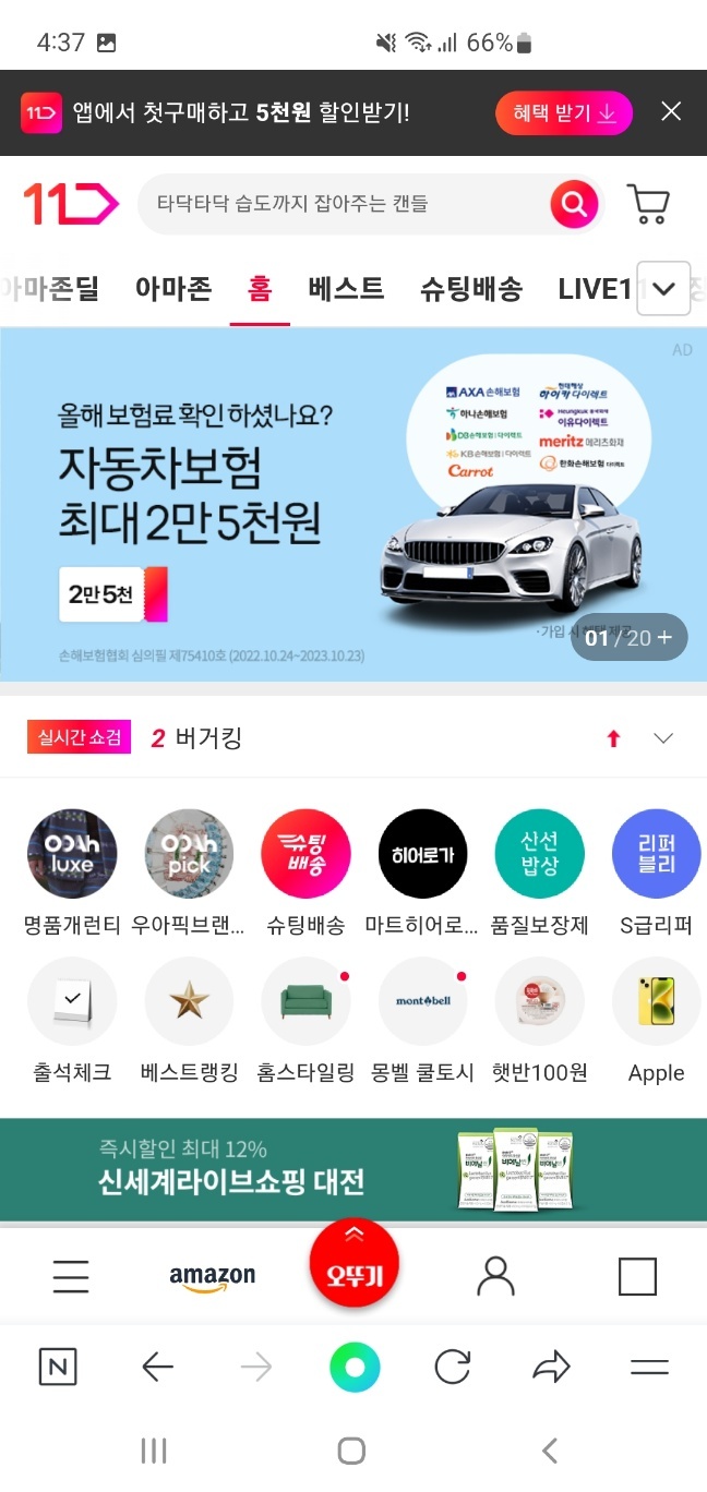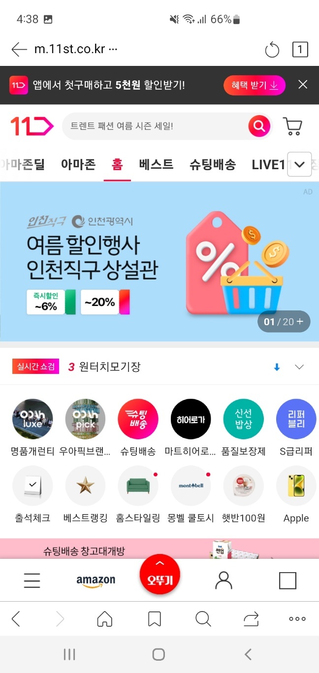 다음 앱에서 11번가 홈페이지 접속해 줍니다.