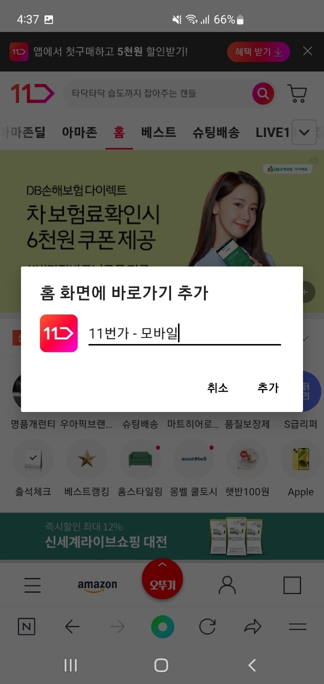 추가 누르면 이렇게 스마트폰 11번가 바로가기 완성.