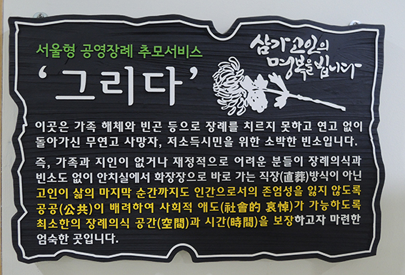 공영장례장인 ‘그리다’는 연고 없이 돌아가신 무연고 사망자와
