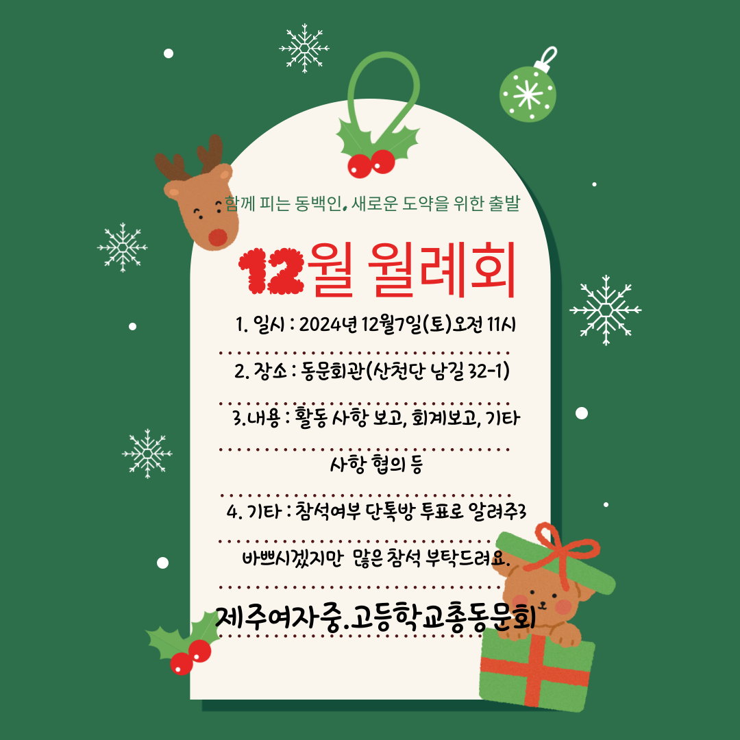 세월이 빠름을 실감하면서 12월 월례회를 안내합니다.