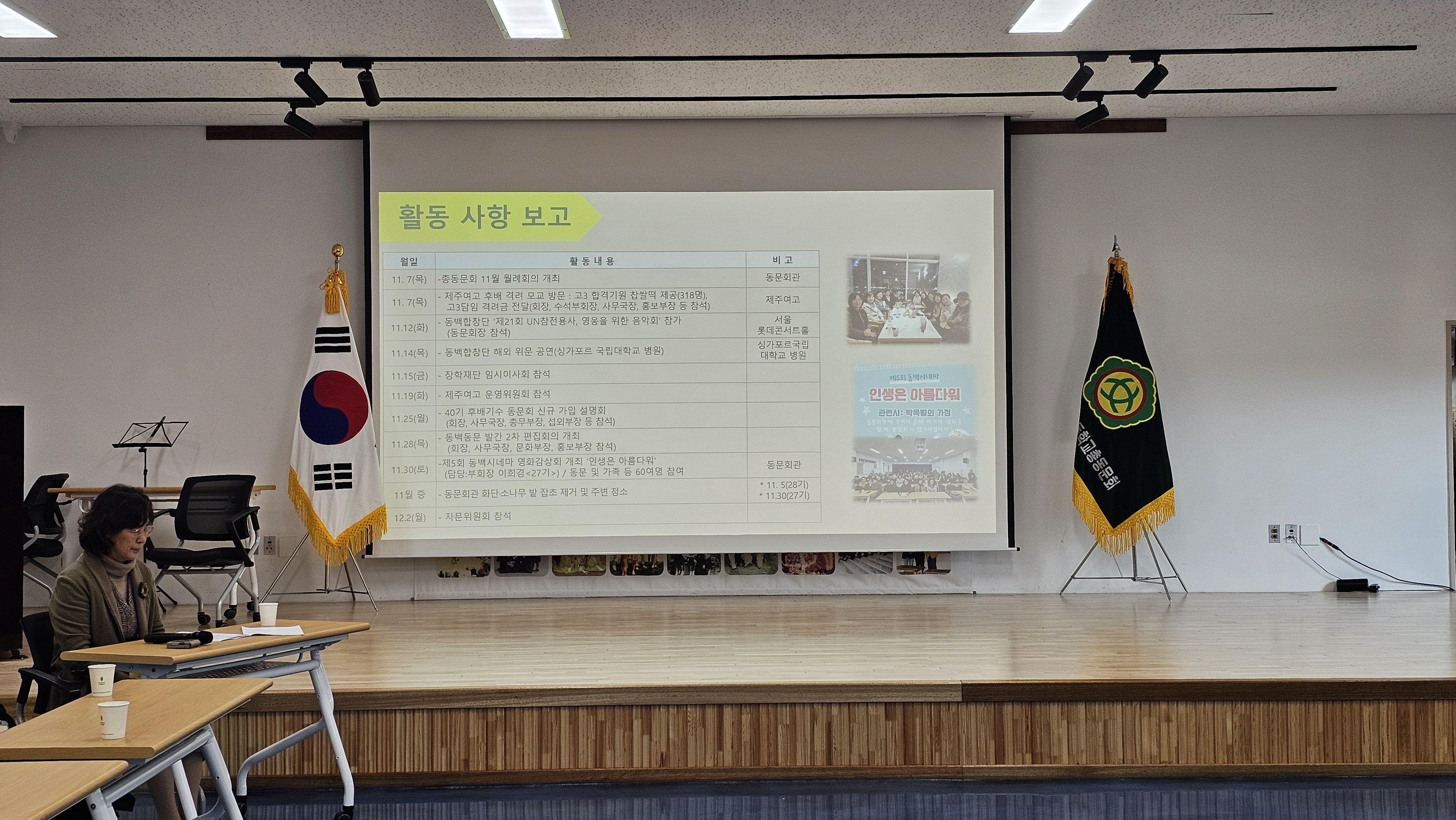 고순심 사무국장이 12월 월례회 시작을 알리다.