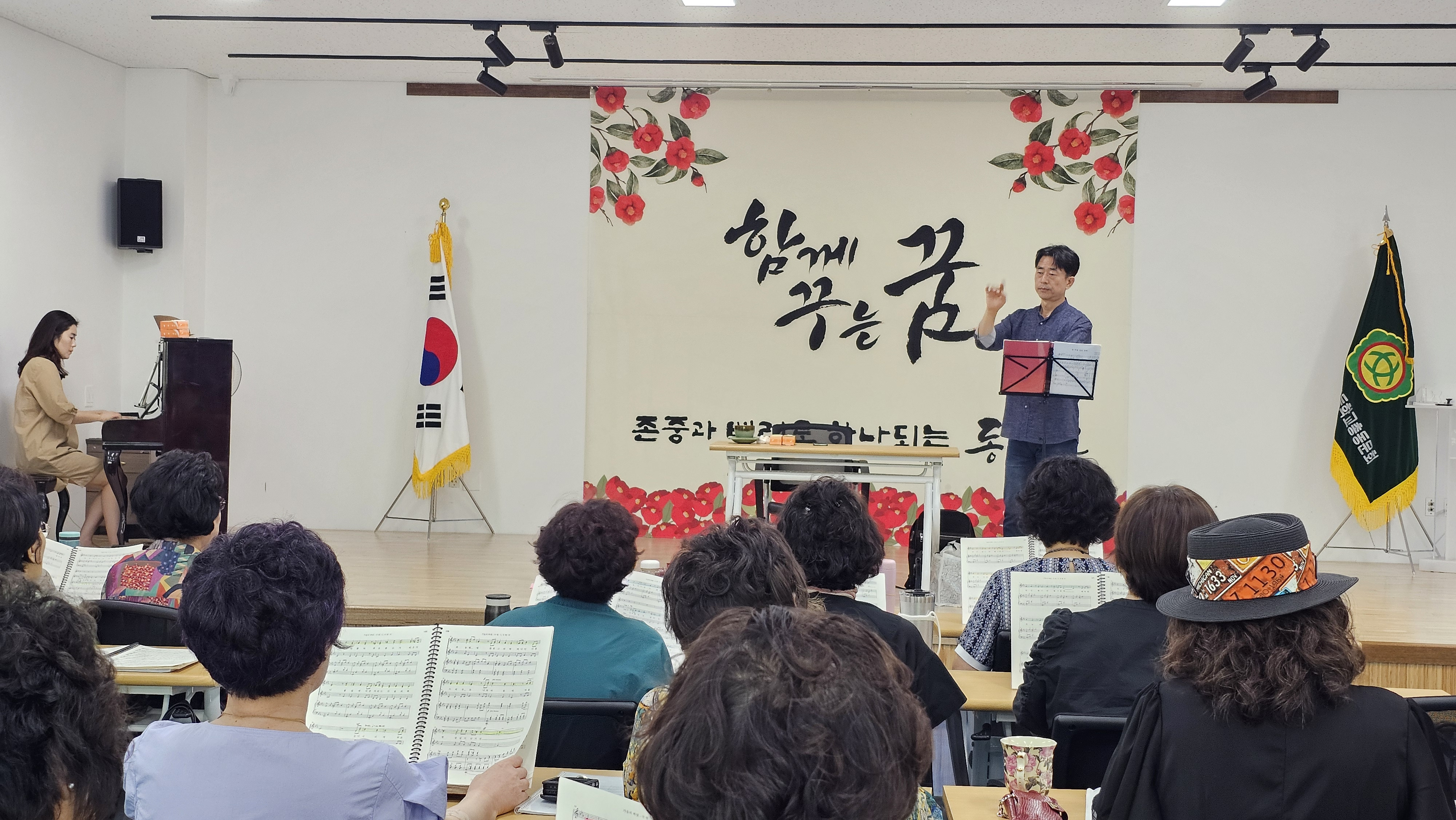 일주일에 두 번(화, 목) 10~12시까지 49명의 단원들이 연습하고 있다.