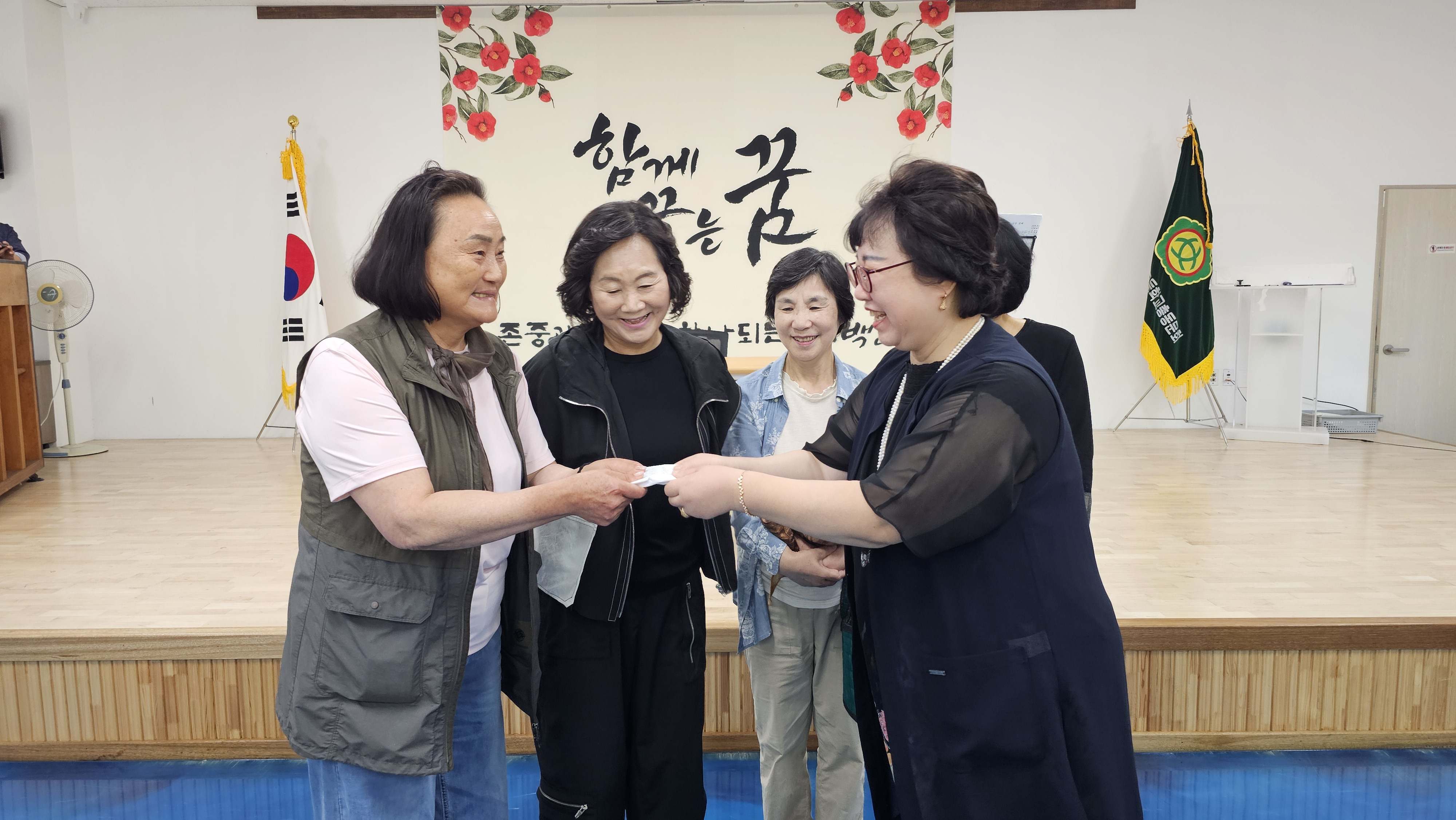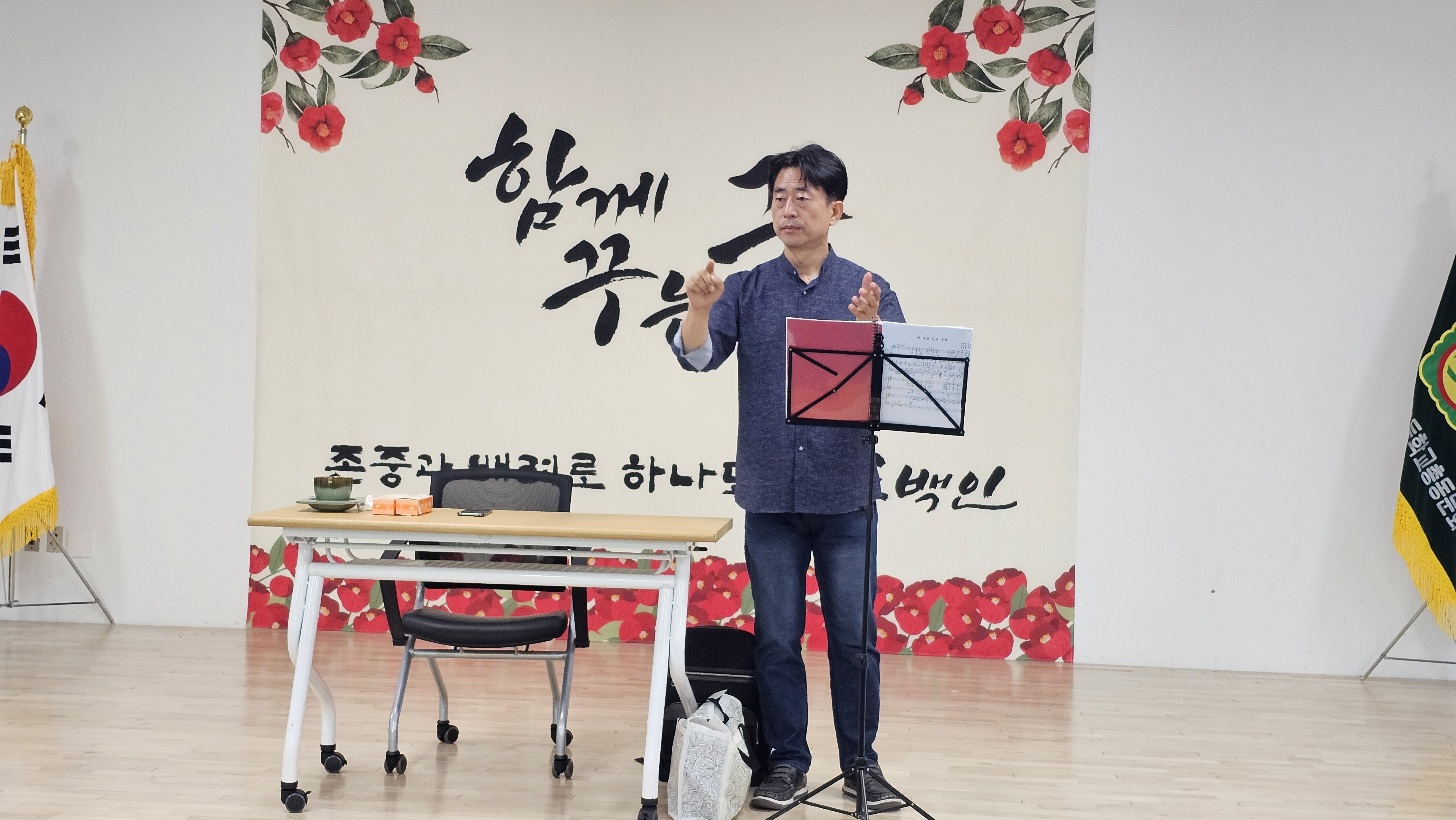 격려금을 전달하고 합창연습하는 단원들에게 힘을 실어주었다.