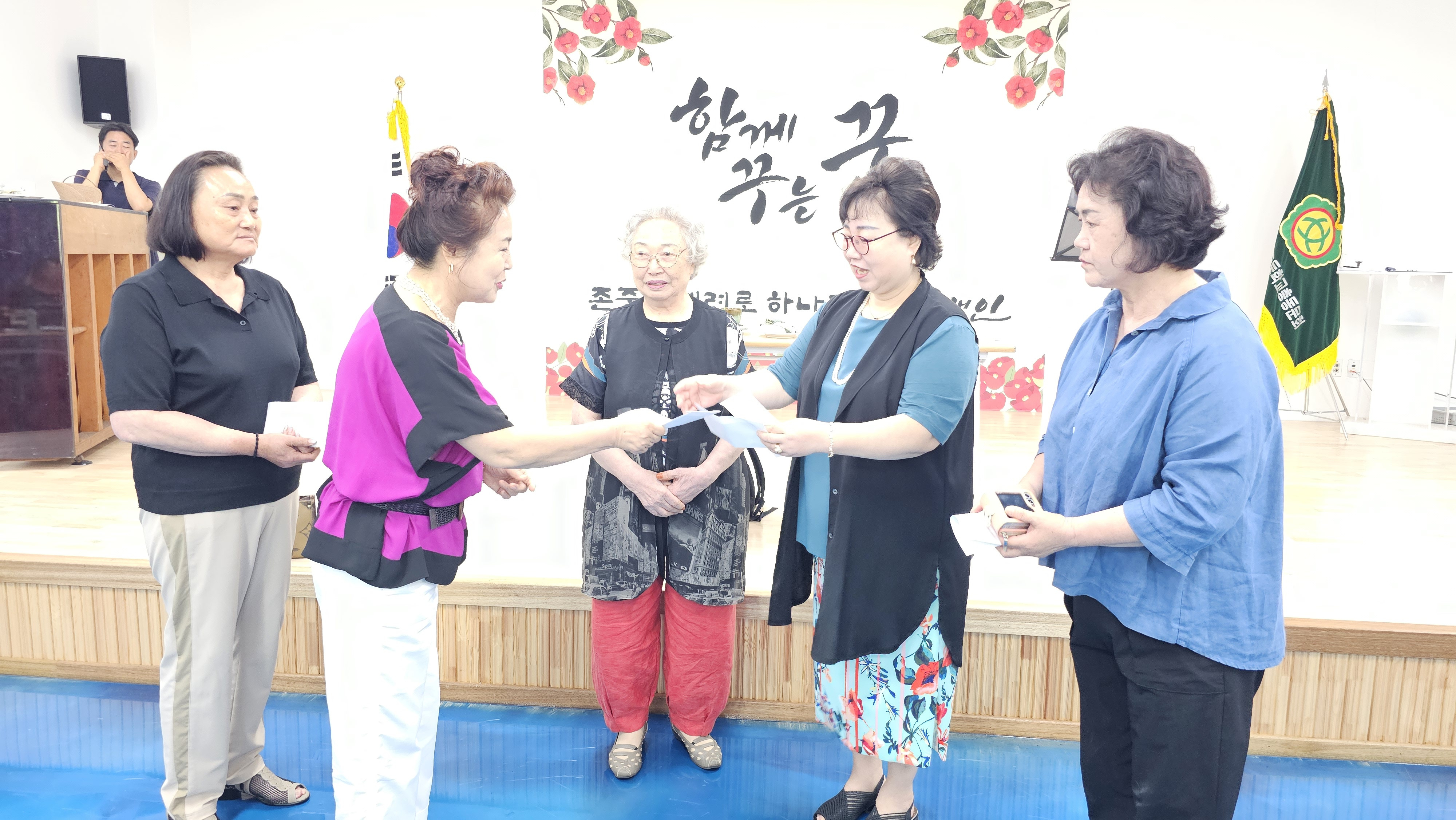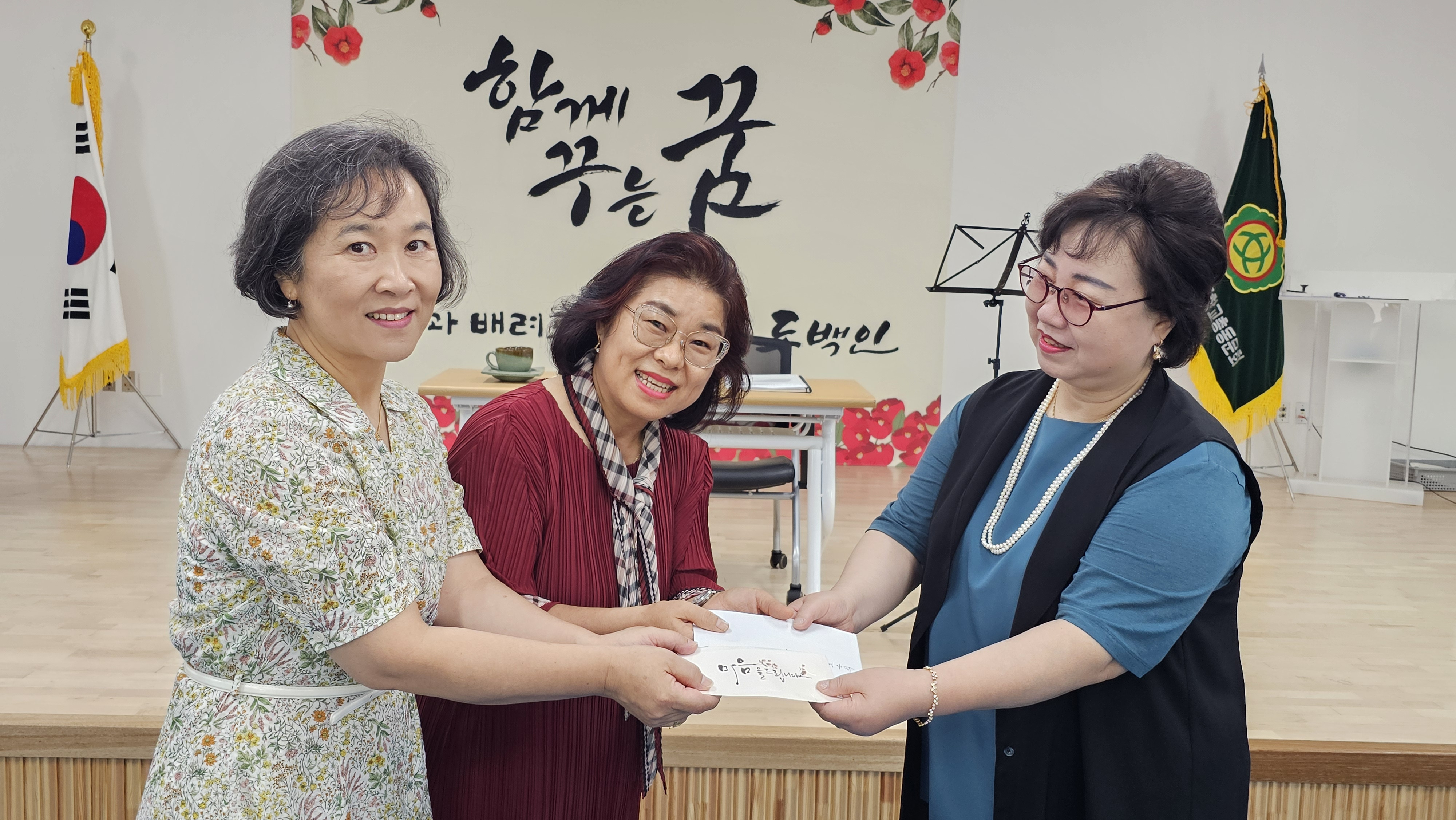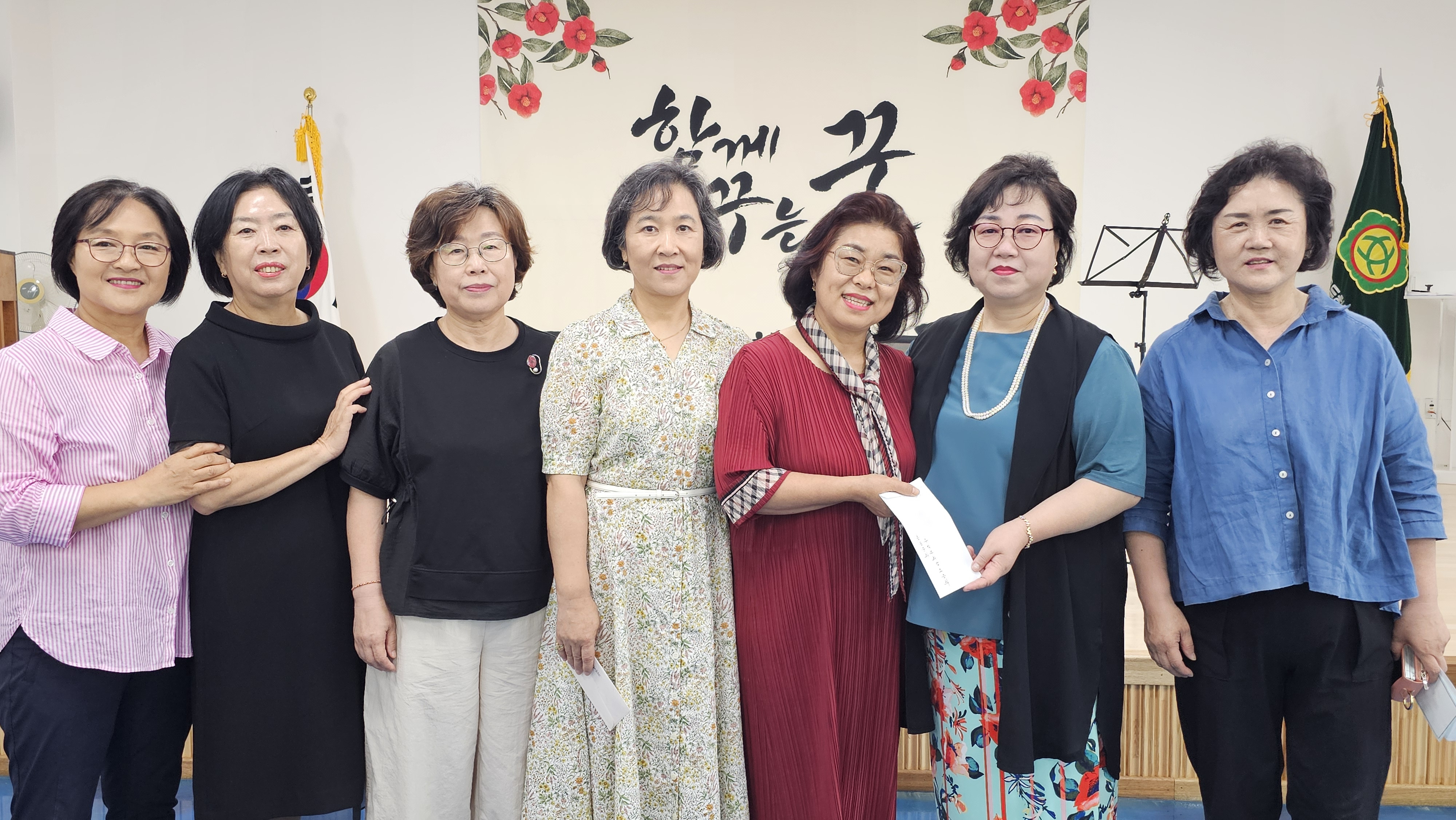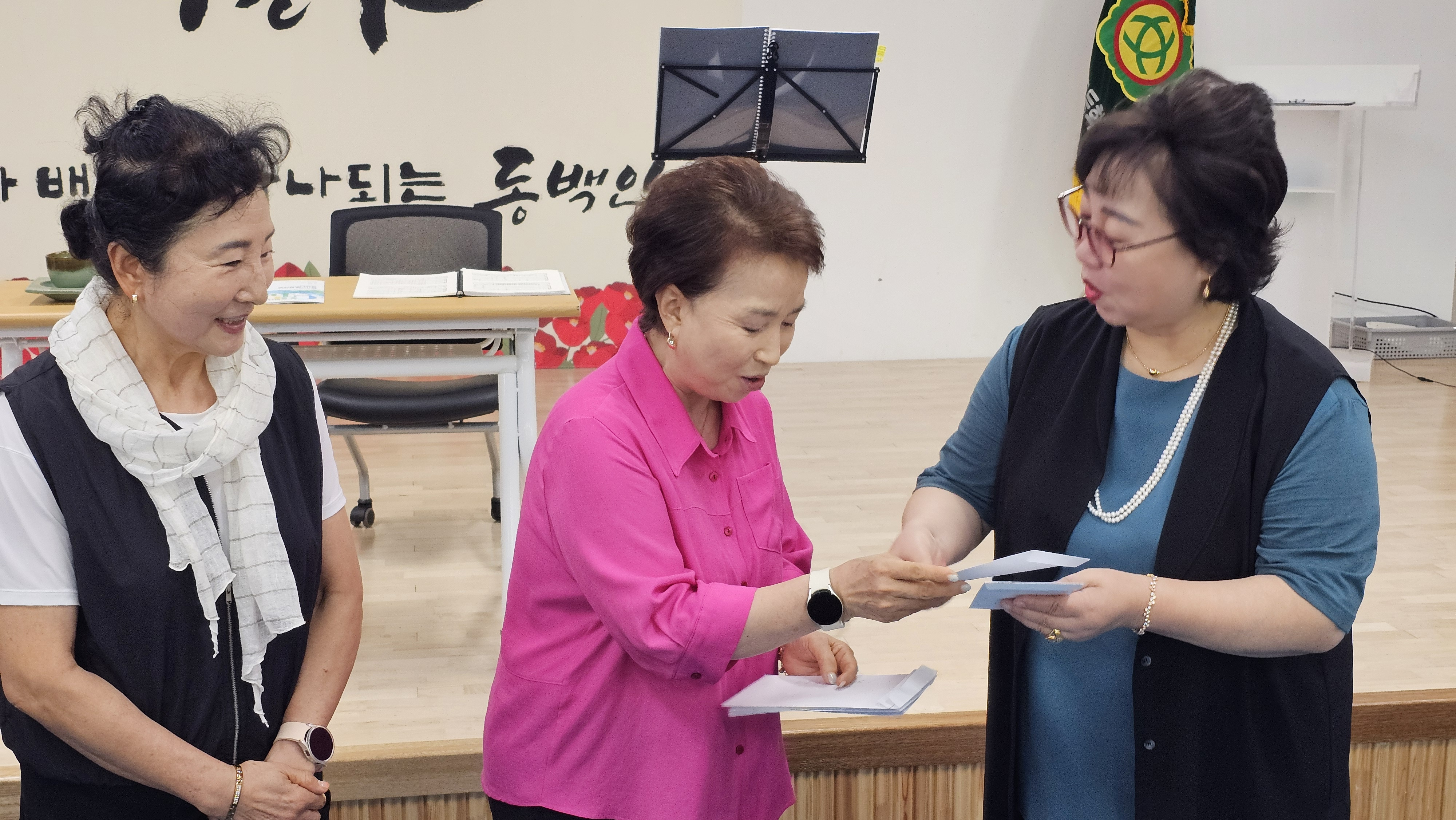 진인자(고3) 자문위원님을 시작으로 조희순(고23) 건립추진위원장, 고23(기대표 강상임), 고25(기대표 오동자), 고29(기대표 김지연), 총동문회(수석부회장 오승희(고29)), 총동문회 골프동호회(회장 김경희(고29), 총무 박진심(고35)) 동문까지 격려금과 간식을 준비해 동문회관을 방문, 동문합창단 단원들에게 큰 힘을 실어주었다.