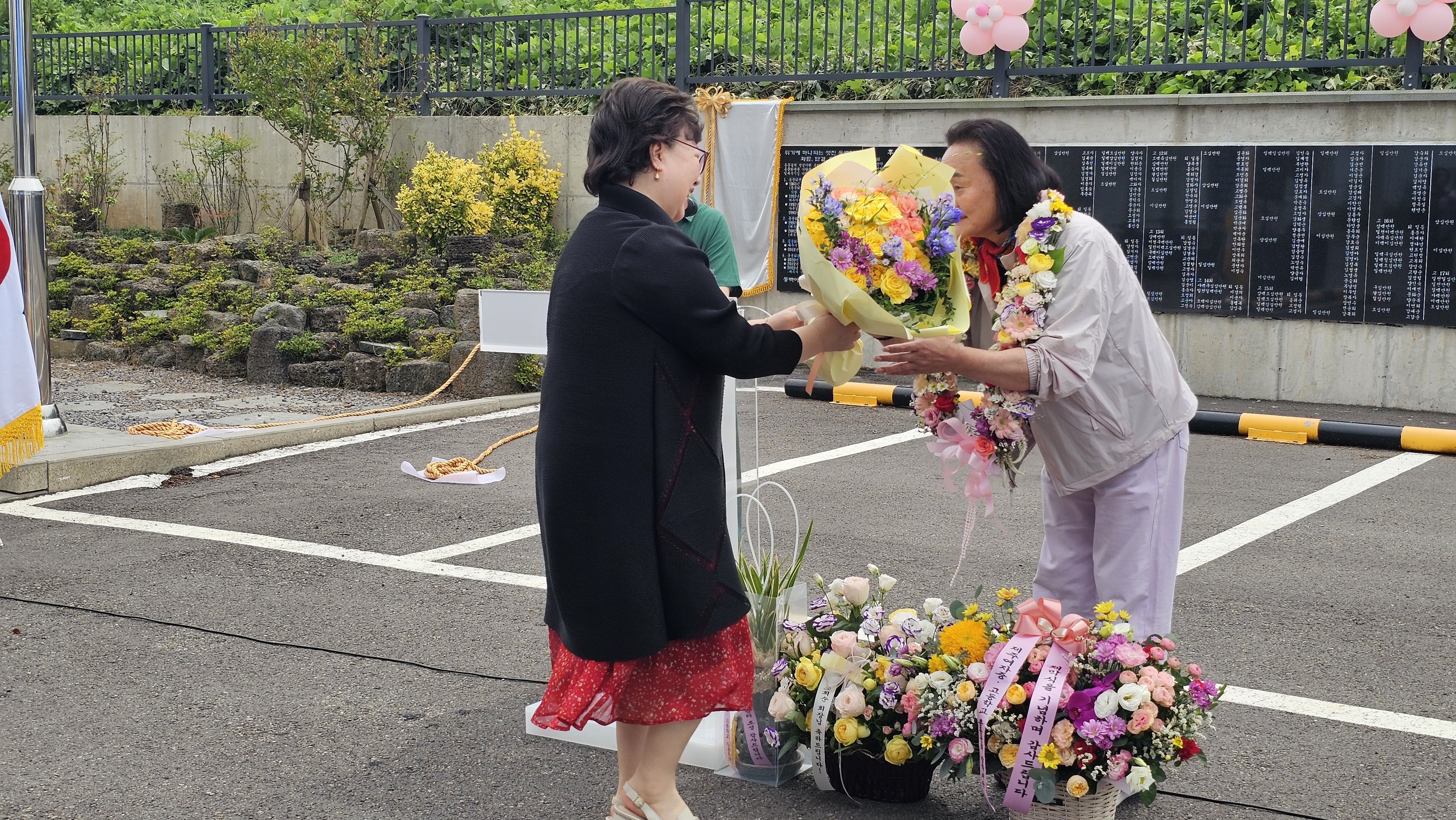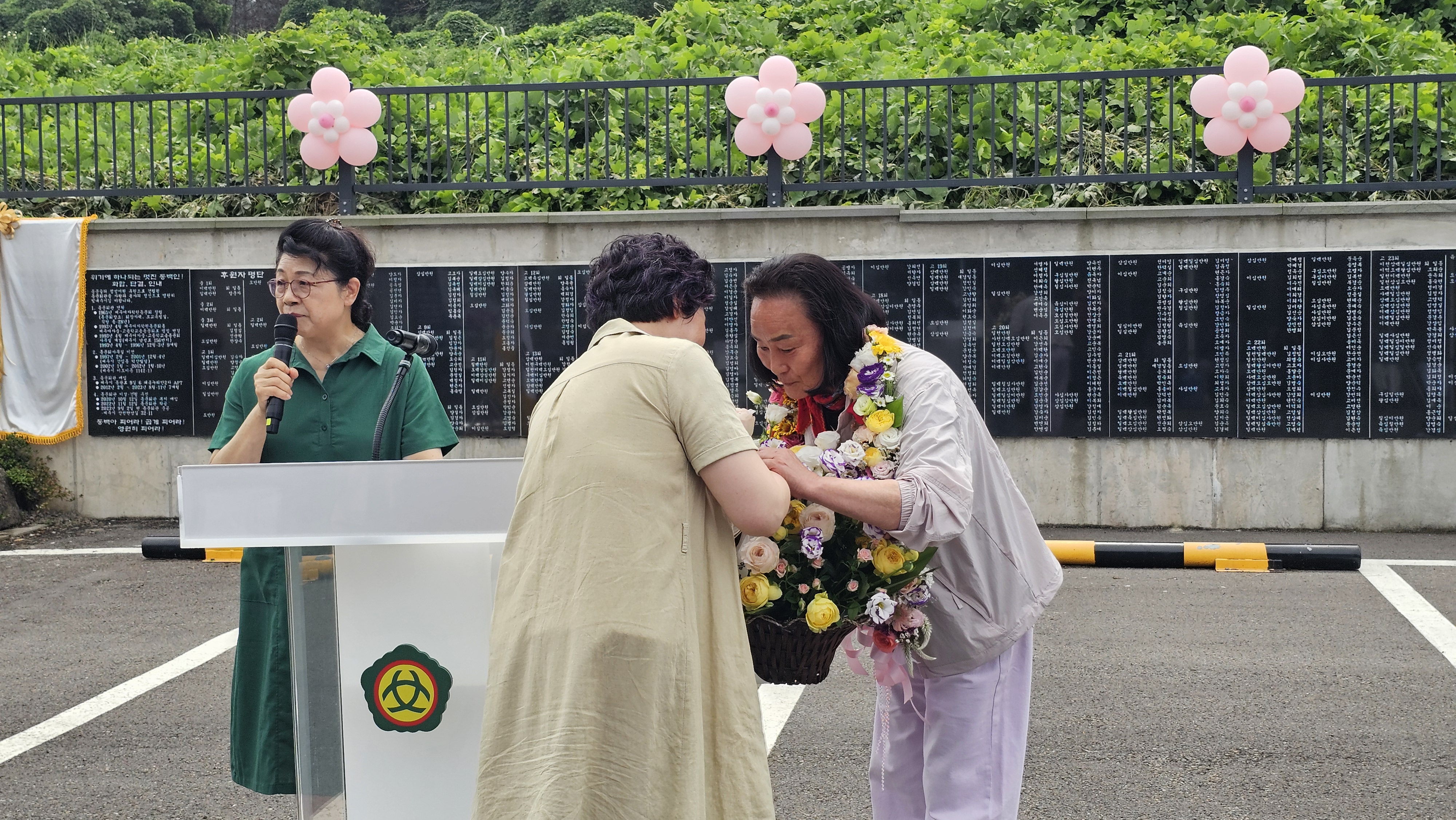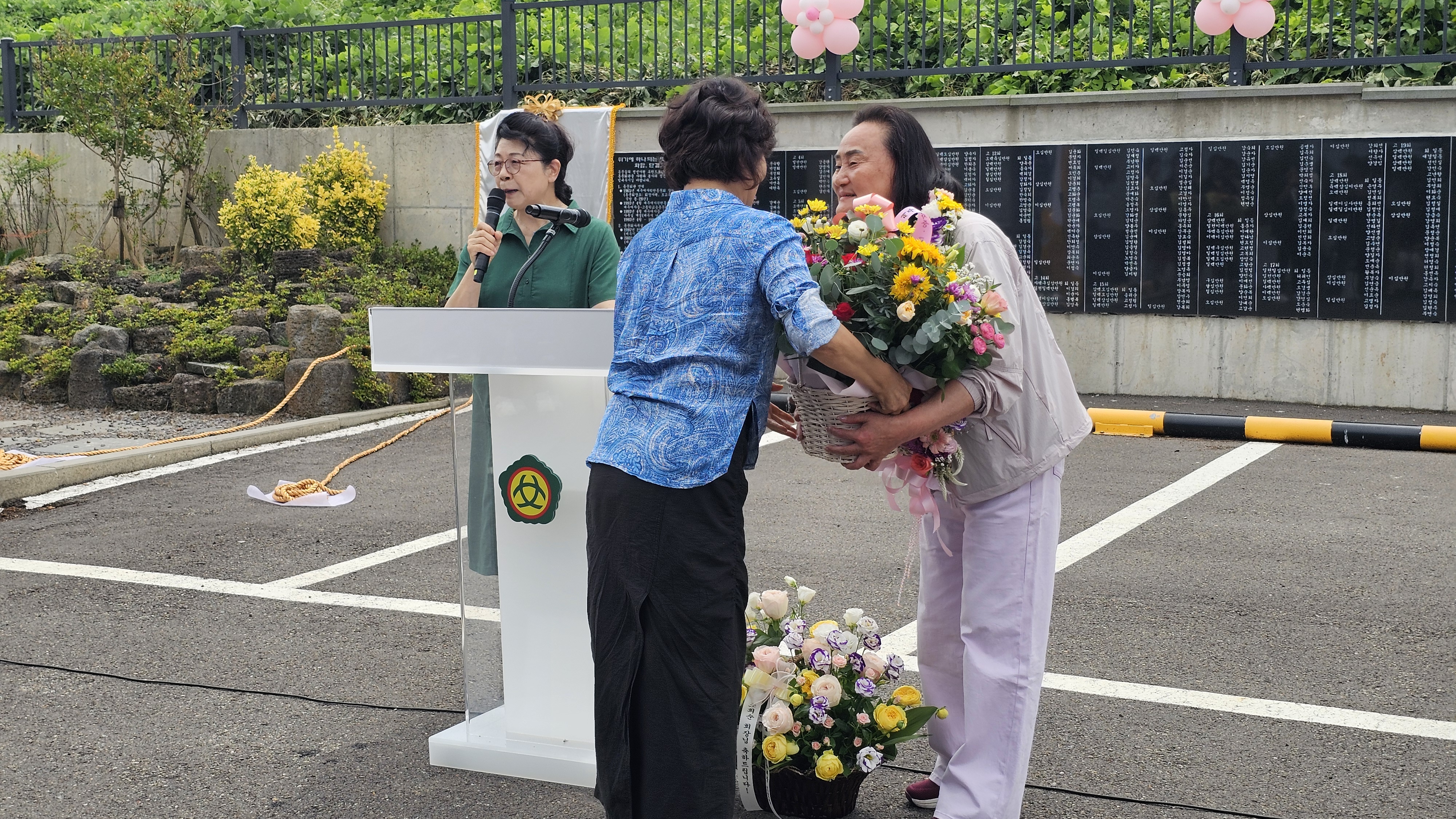 조희순 건립추진위원장께서 수고하신 건립추진위원들에게 감사 꽃다발 및 화분 전달