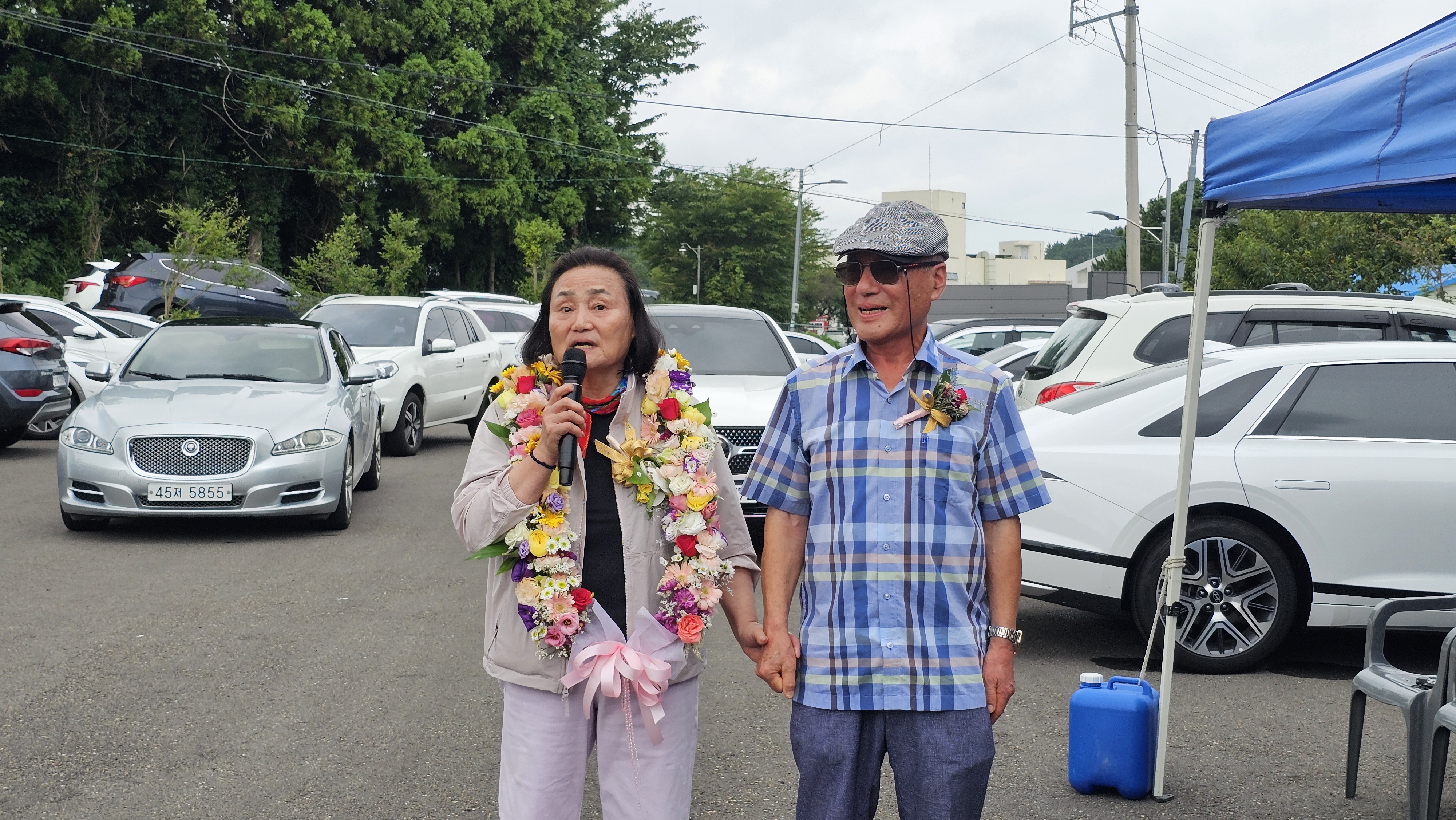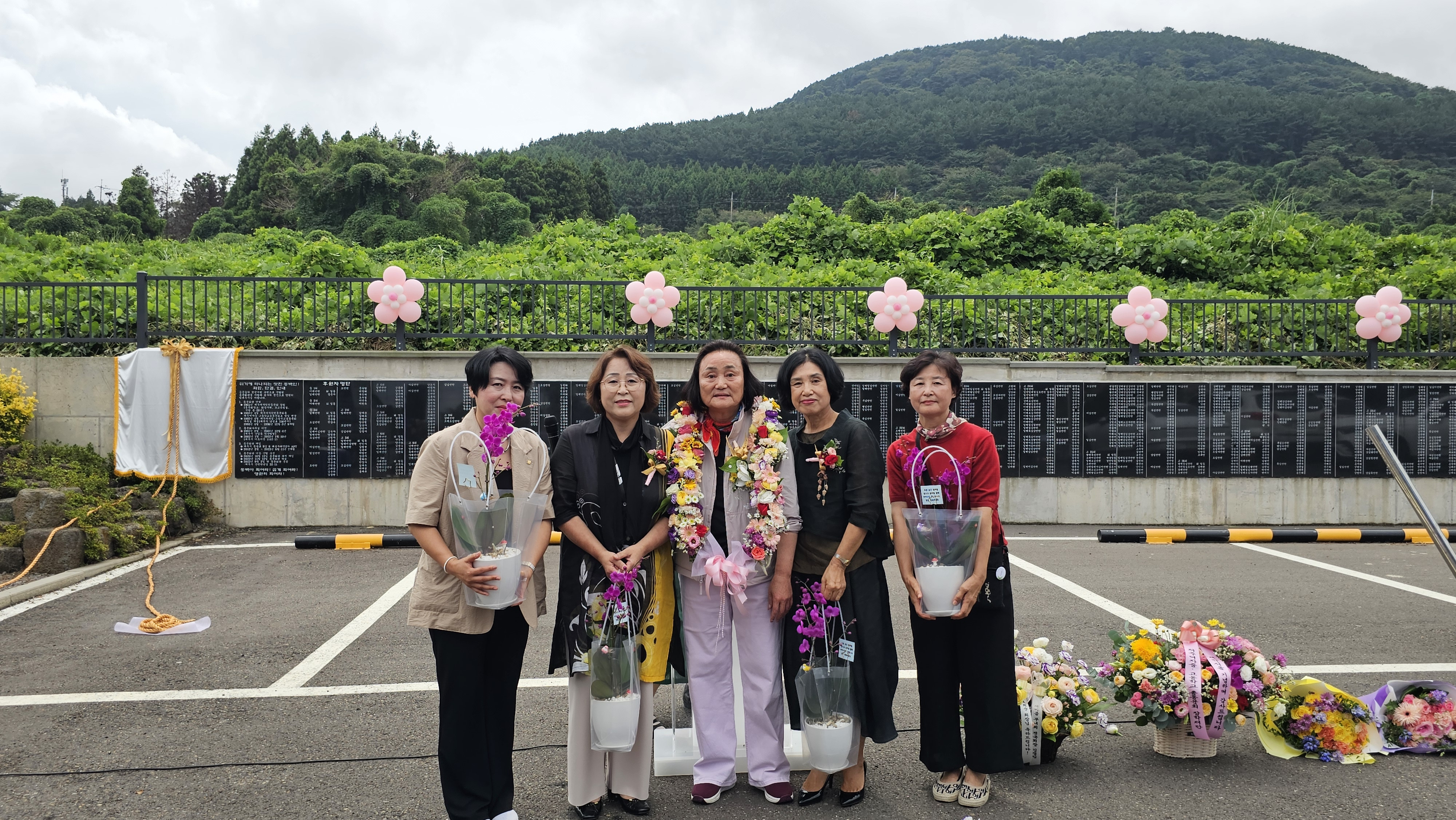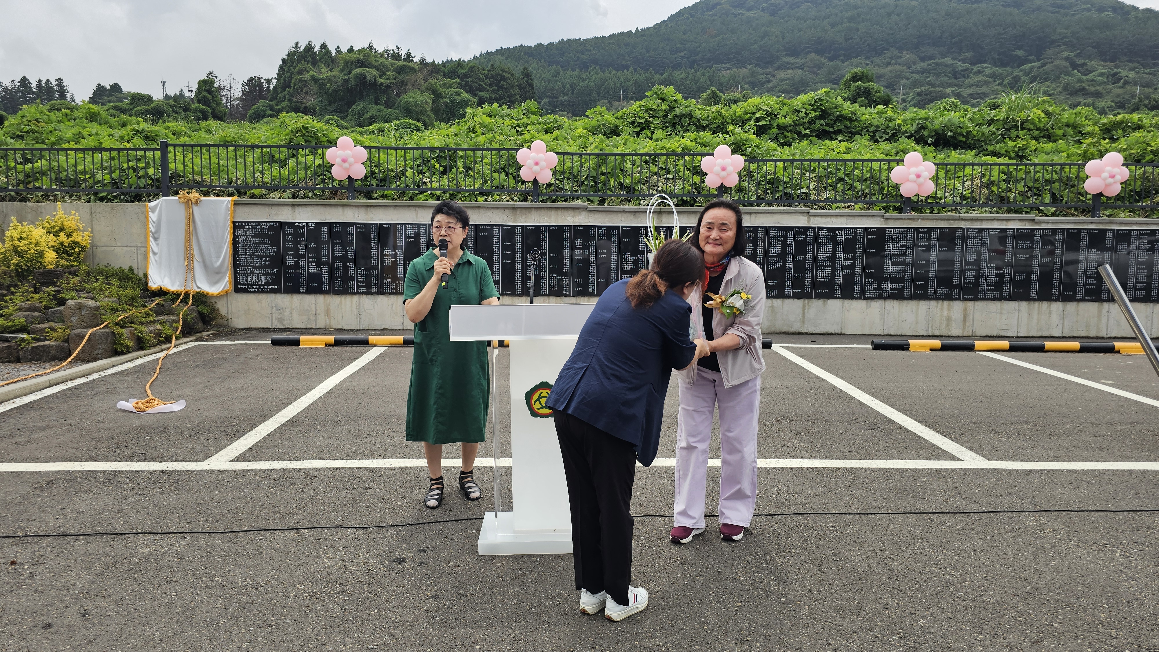 조희순 건립추진위원장께서 수고하신 건립추진위원들에게 감사 꽃다발 및 화분 전달