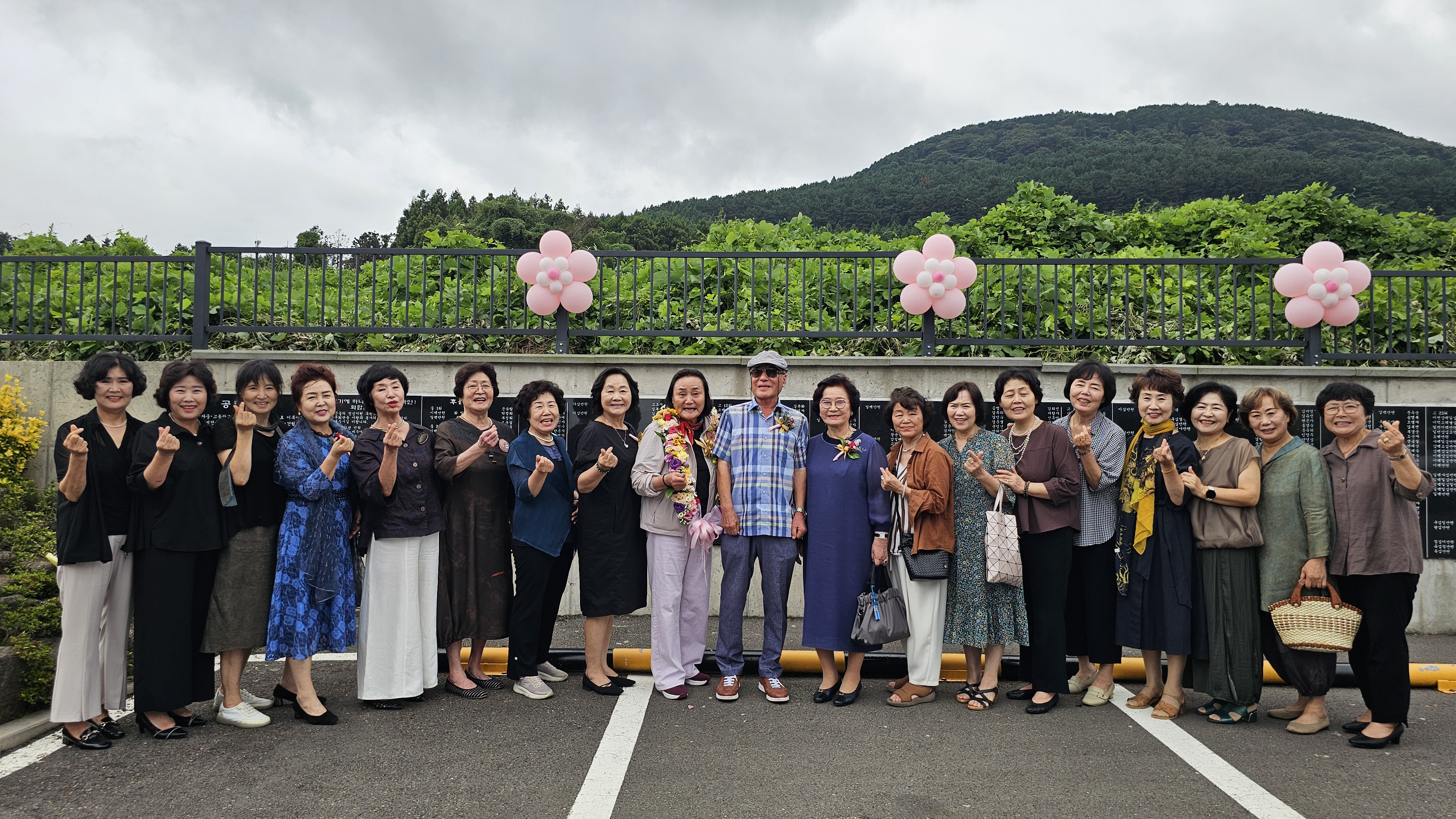 동문회관 건립에 정성과 사랑을 쏟아주신 조희순 건립추진위원장님께 감사함을 담아 꽃다발 전달