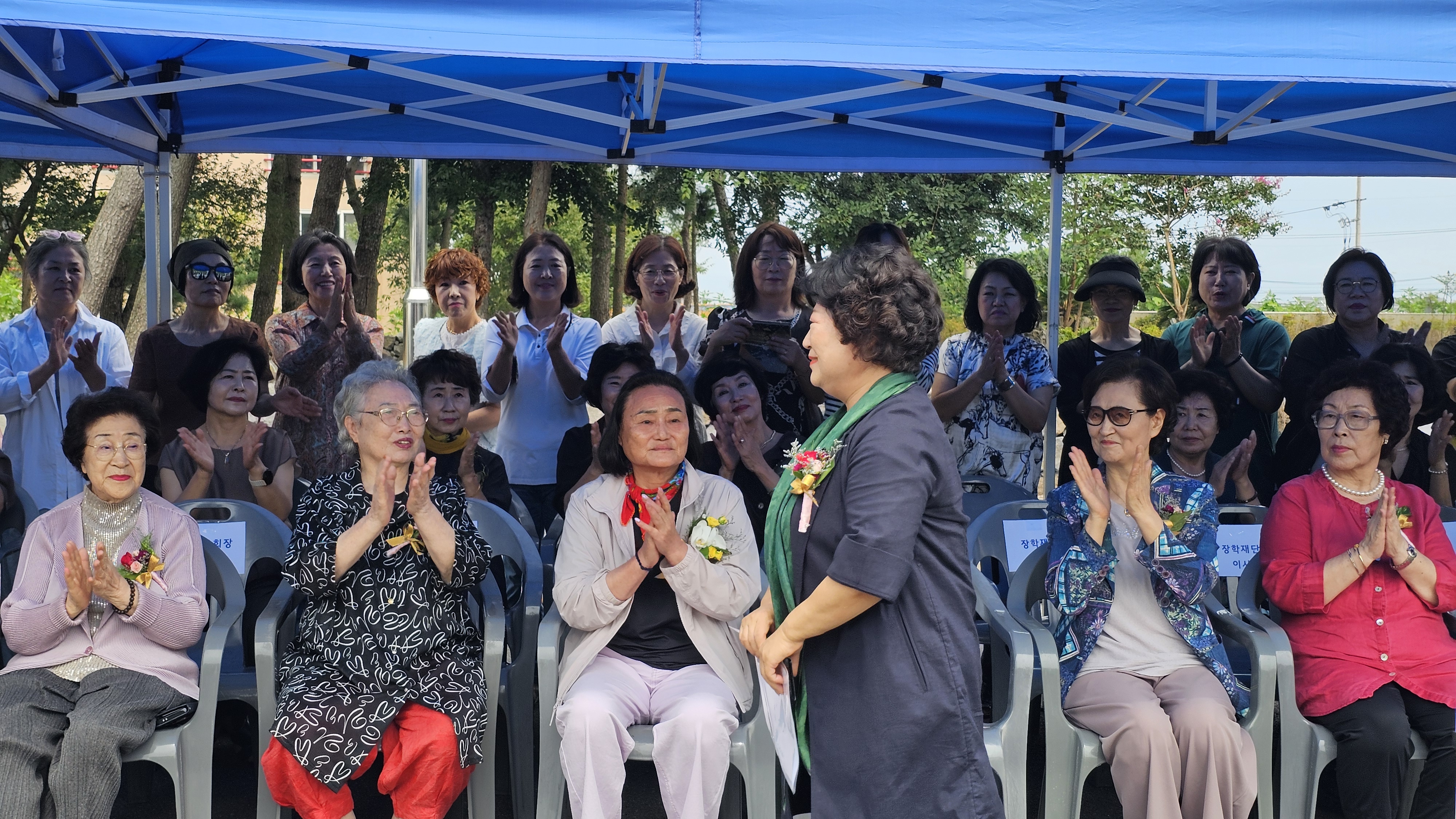 총동문회 신금이(고28) 부회장의 사회로 진행된 이번 공덕비 제막식은 국기에 대한 경례, 환영사(고숙희 총동문회장), 축하선물(꽃다발, 꽃목걸이, 화분) 증정, 인사말(조희순 건립추진위원장), 공덕비 제막식(제막줄 당기기), 사진촬영 순으로 동문에 대한 무한 긍지와 자부심으로 큰 감동을 선사했다.