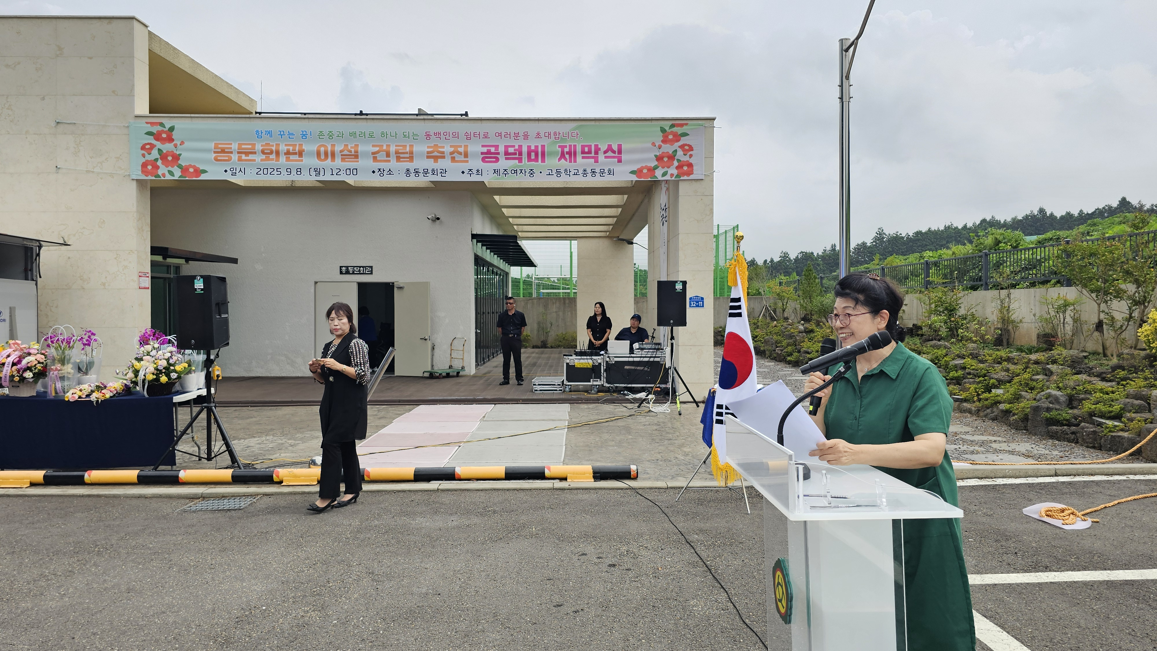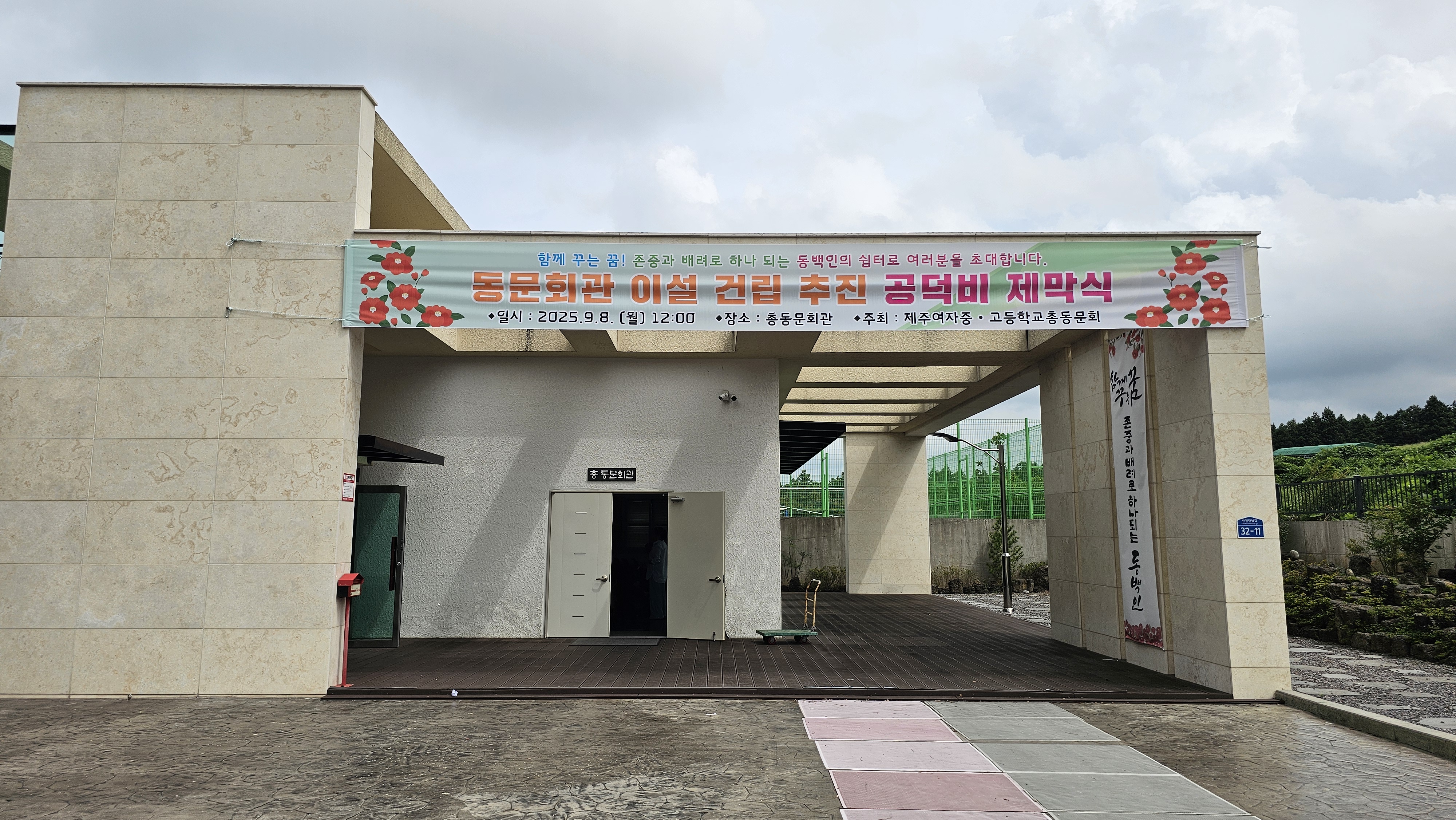2022년 11월 12일 동문회관 신축공사 착공식(제27대 김효신 총동문회장 재직 시), 2023년 9월 2일 동문회관 준공식(제28대 김혜란 총동문회장 재직 시), 제주도 최초 제주여자 중·고등학교 동문회관 건립이라는 어려운 여건 속에서도 열정을 바탕으로 이루어낸 작품이다.