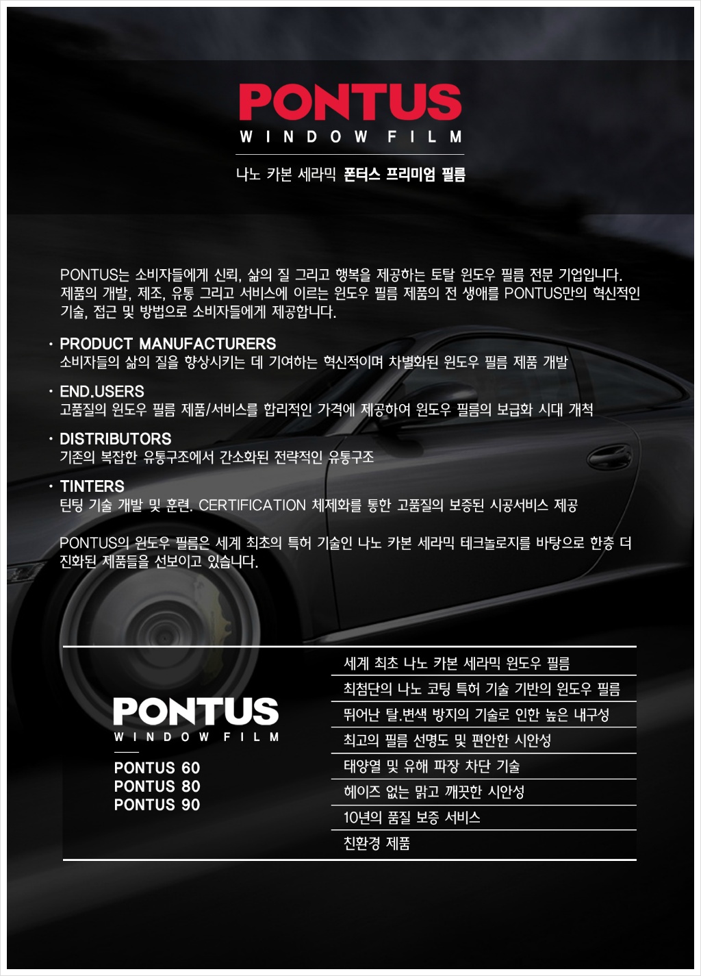 폰투스 윈도우 썬팅 필름 소개 /레이노에서 생산하고 폰투스가 판매/PONTUS window film /부산,경남,울산 지역 대리점모집