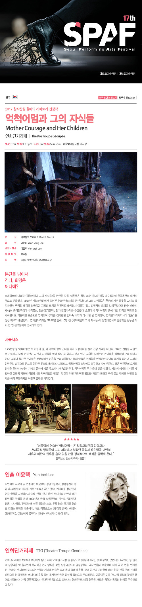 2006 한국연극계가 만장일치로 선정한 최고의 작품 ‘억척어멈과 그의 자식들’