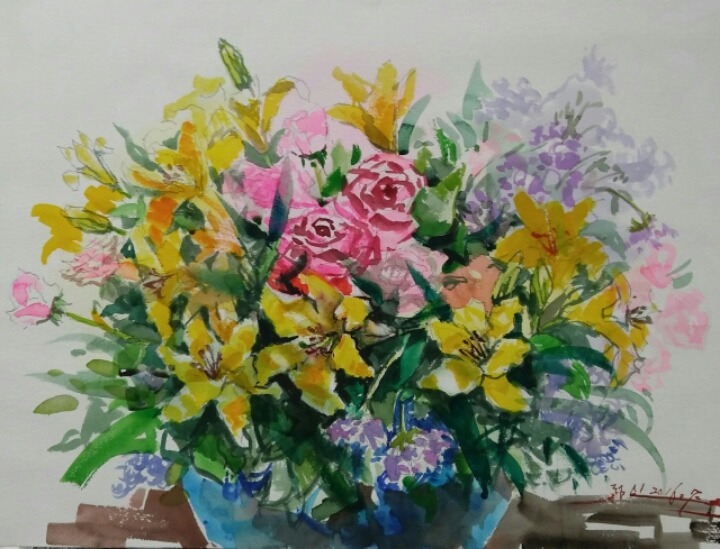 2016년 7월 28일 작 수채 20호 명제 : 아! 이 흐드러짐에..........