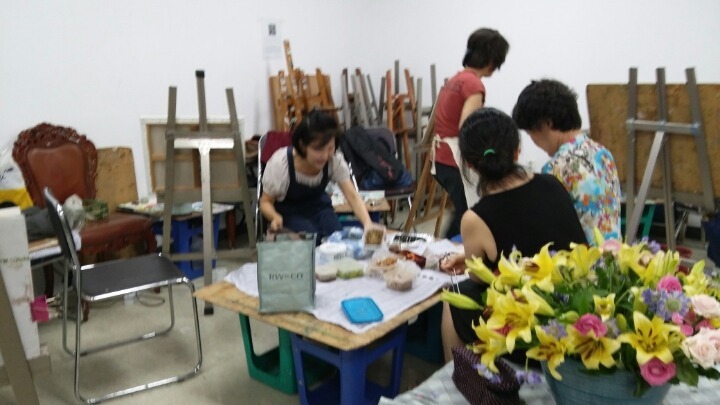 기다리던 점심시간이 되어, 화실에 점심상이 차려진다.