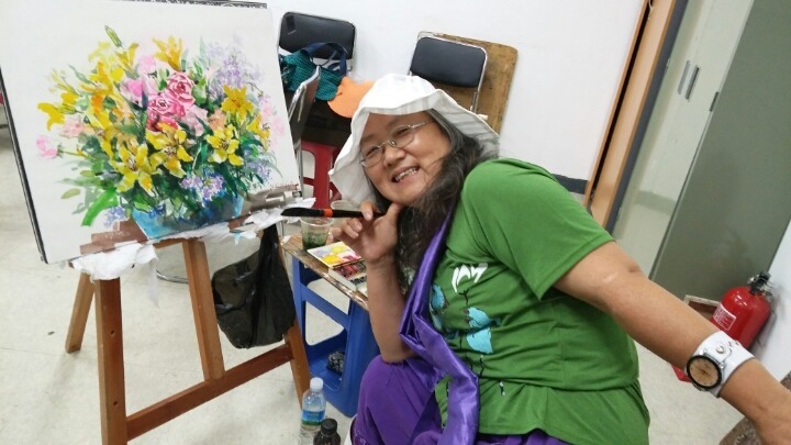 나, 서양화가 정정신이 그려주기를 목빠지게, 아니 줄기빠지게 기둘리기를 꽃님들을,