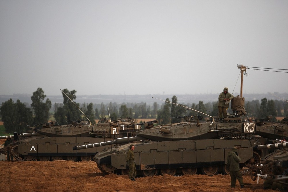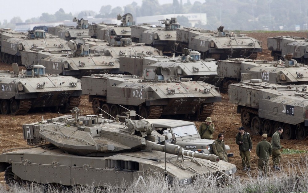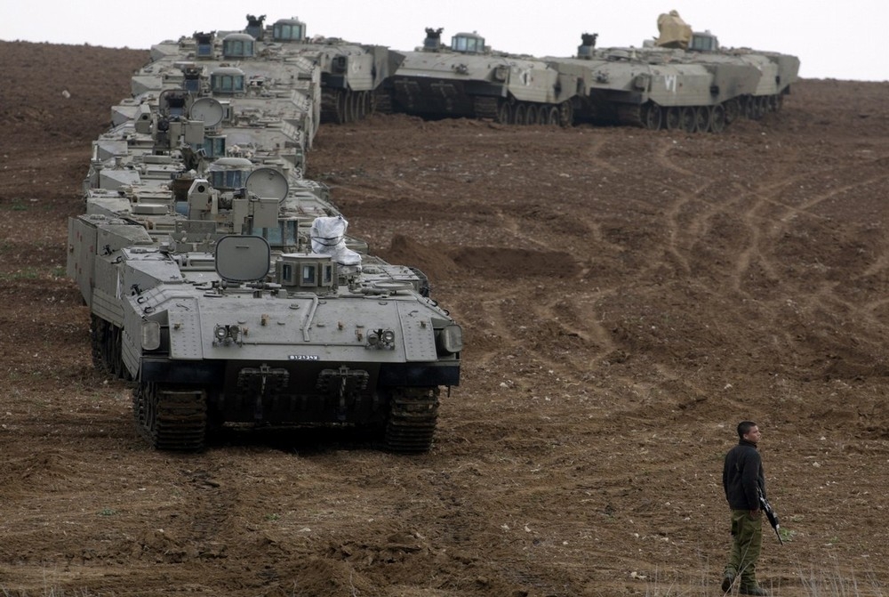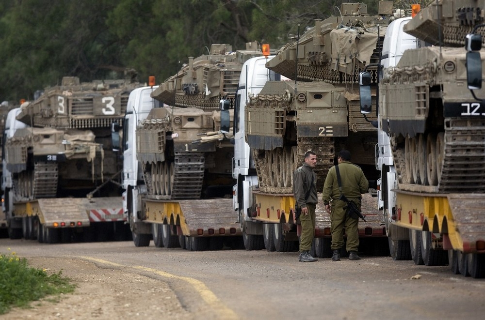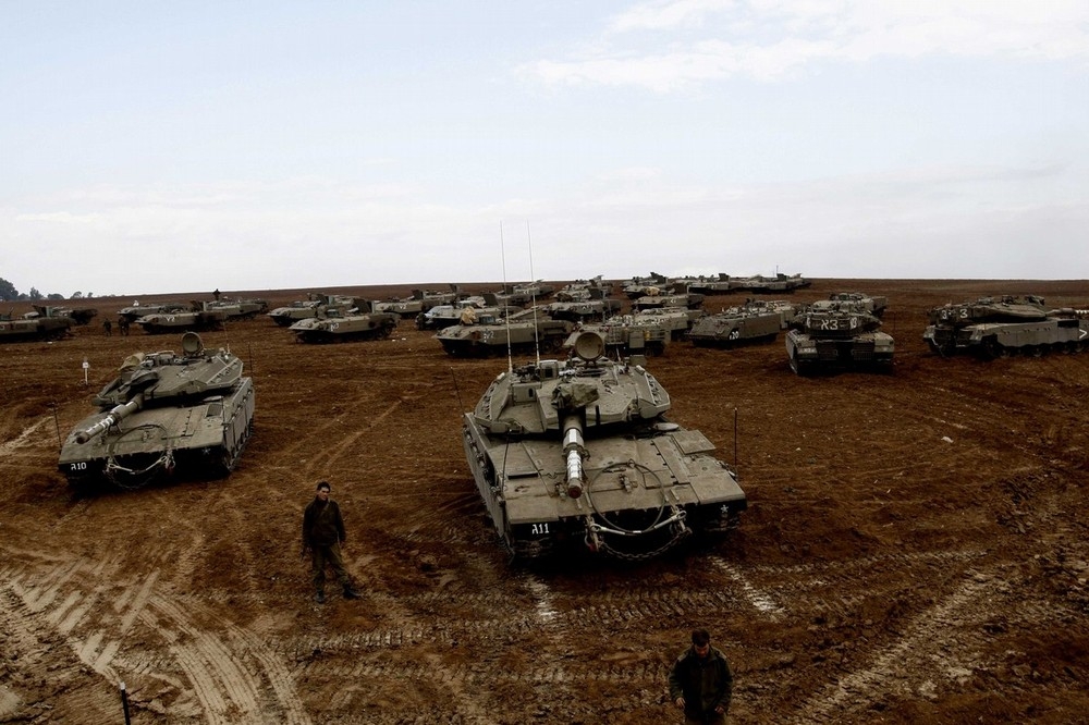 가자지구 인근에 집결중인 이스라엘군 전차와 장갑차및 병사들 모습으로 29일 촬영된 사진입니다.